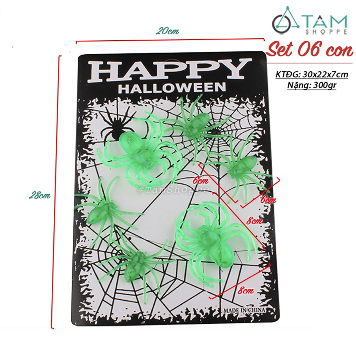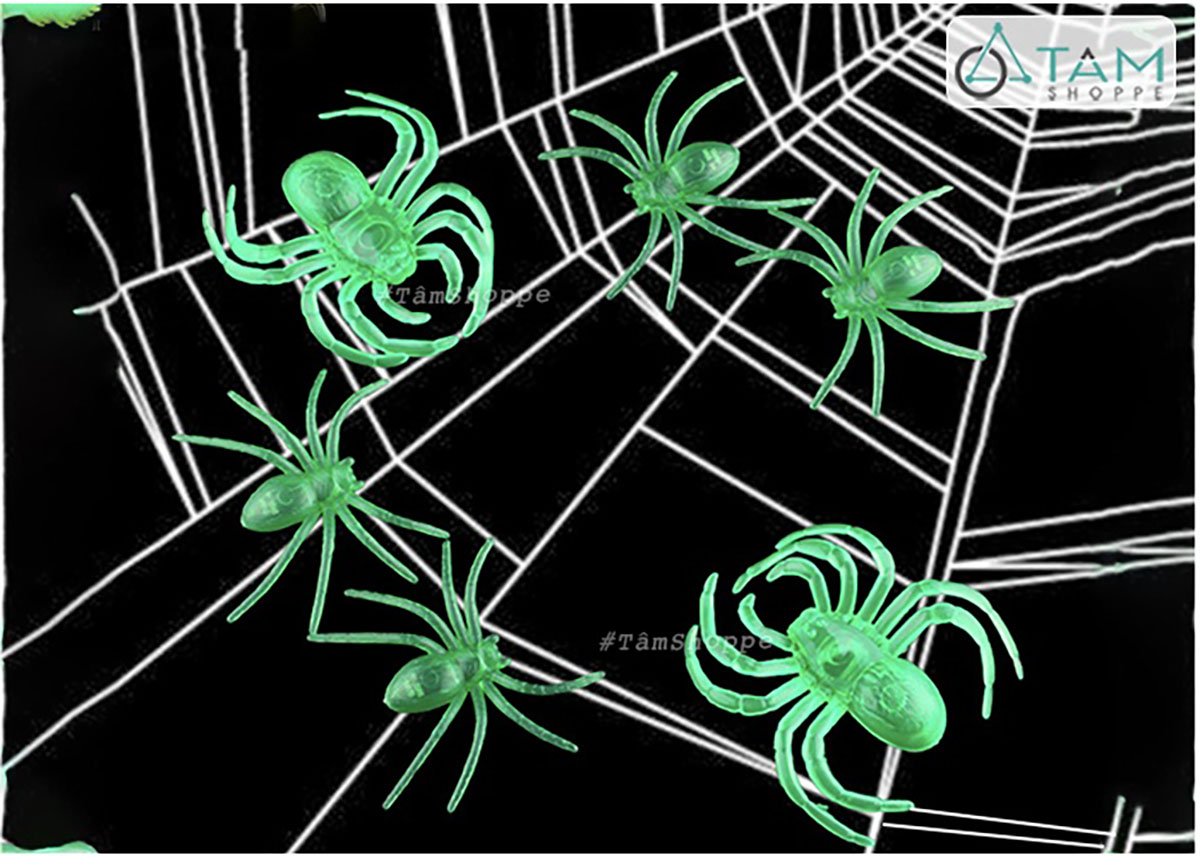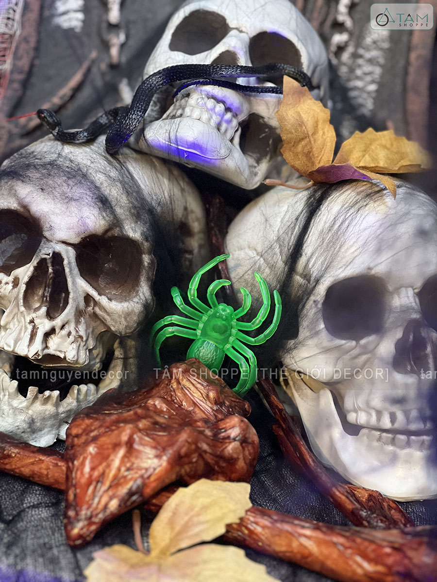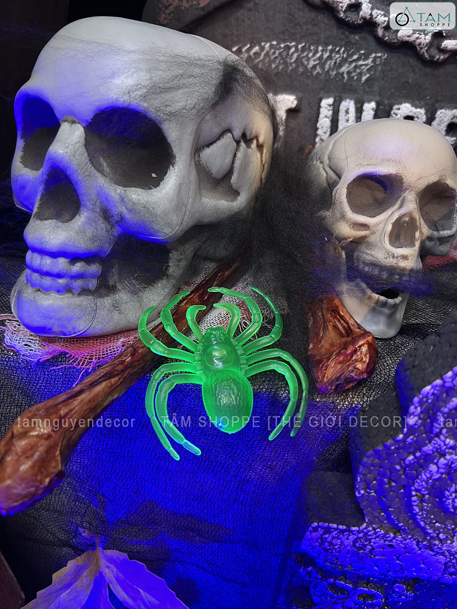 Set 06 con nhện xanh lá dạ quang [Ửng sáng - Nhiều cỡ] trang trí đẹp mắt. Đồ trang trí Halloween là những vật dụng, mô hình hoặc phụ kiện được dùng để tạo không khí rùng rợn, huyền bí, vui nhộn đặc trưng cho ngày lễ Halloween (31/10).