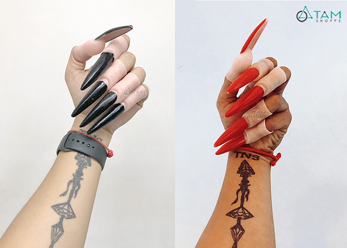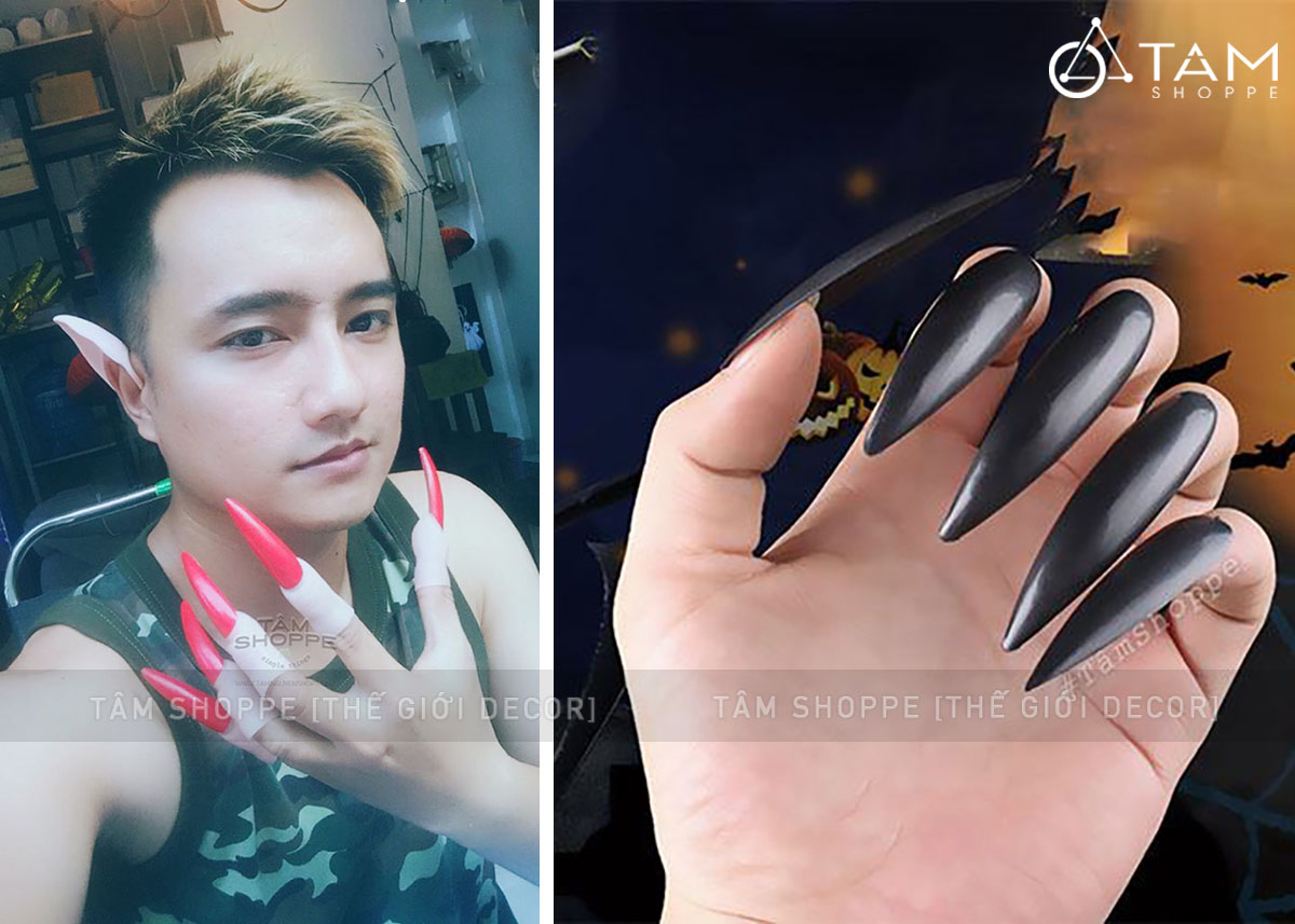 Set 10 móng tay nhọn hoá trang yêu tinh, ma quỷ [Kiểu dán/ chụp - Đủ màu] hoá trang đẹp mắt.
