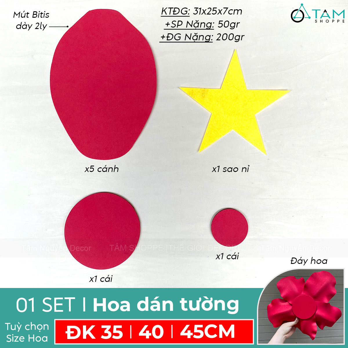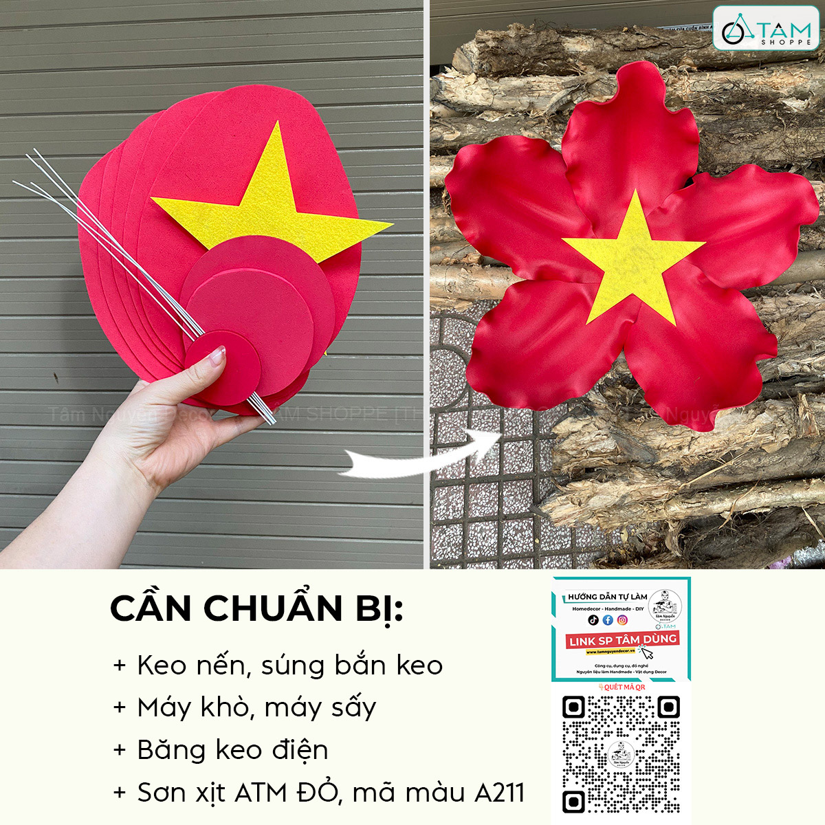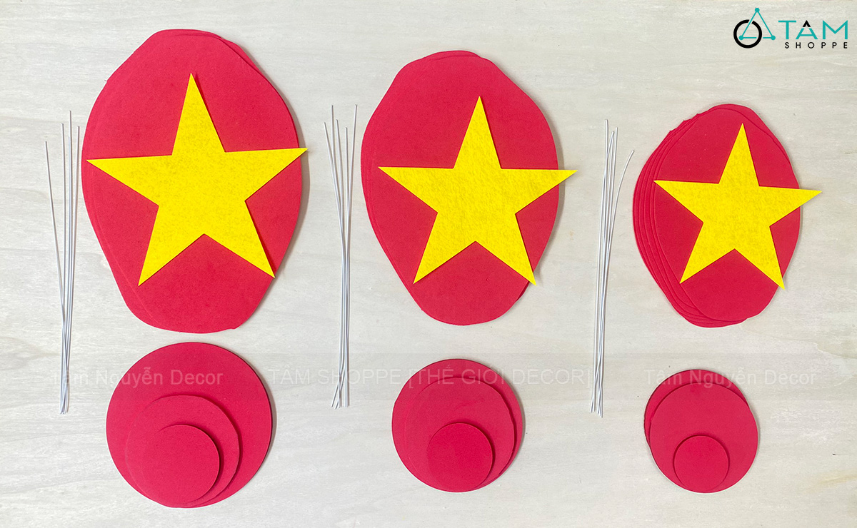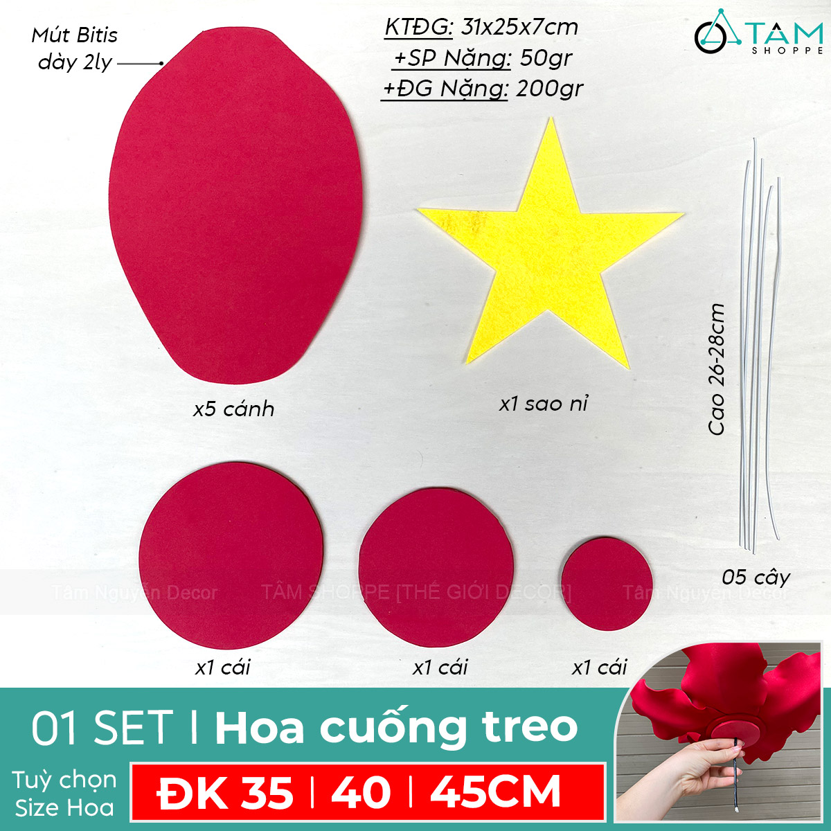 Set phụ kiện tự làm Hoa cờ Việt Nam [Loại đẹp - 3 Size] 35-45cm trang trí đẹp mắt