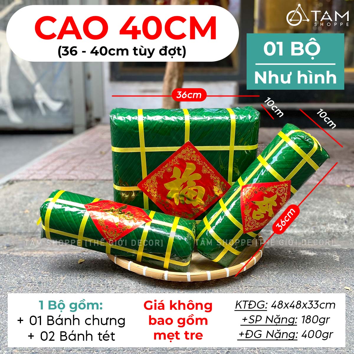 - SP nhận được gồm 01 Set, gồm 01 bánh chưng và 02 bánh tét. Tùy chọn phân loại kích cỡ