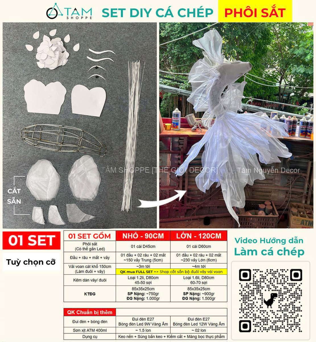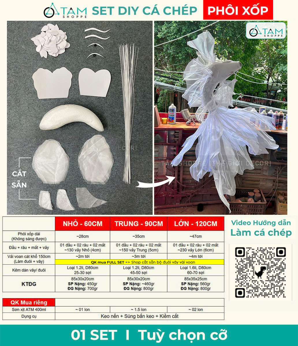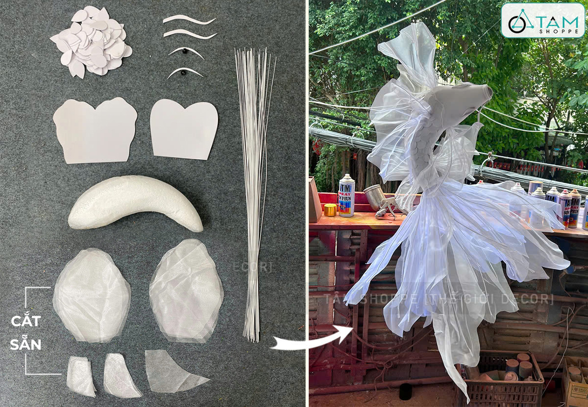 Một set phụ kiện tự làm cá chép decor bao gồm các nguyên liệu và vật dụng sẵn có để bạn dễ dàng tự tạo ra mô hình/trang trí cá chép theo phong cách handmade, mang đậm dấu ấn độc đáo cá nhân. Bạn có thể làm theo mẫu có sẵn và sáng tạo thêm, hoặc cũng có thể dựa vào nguyên phụ liệu có sẵn, biến hoá theo sự sáng tạo của riêng mình.
