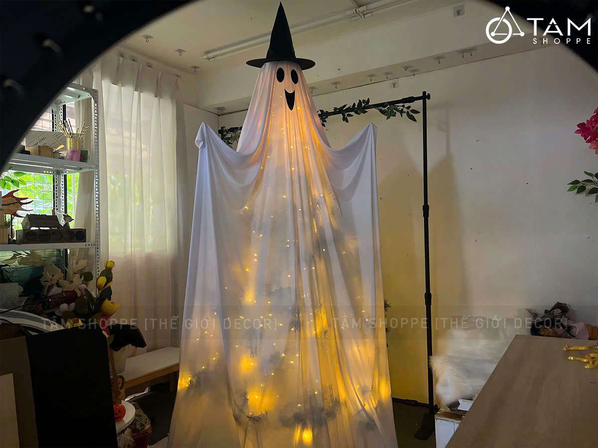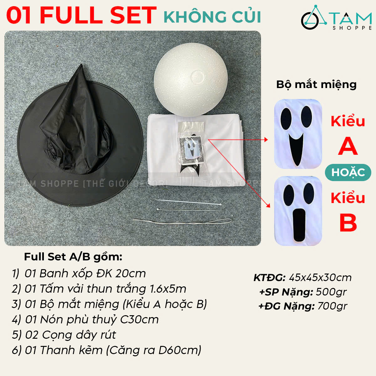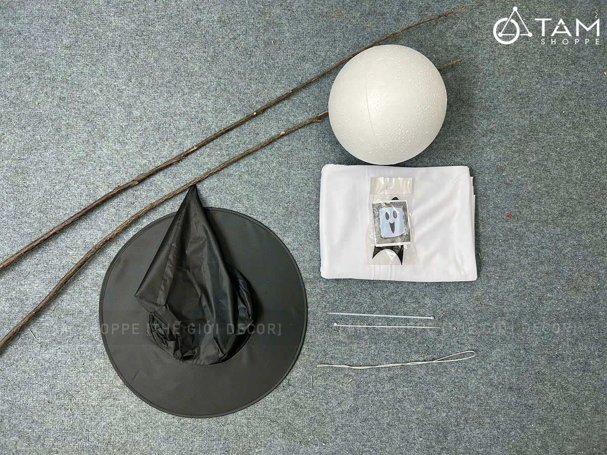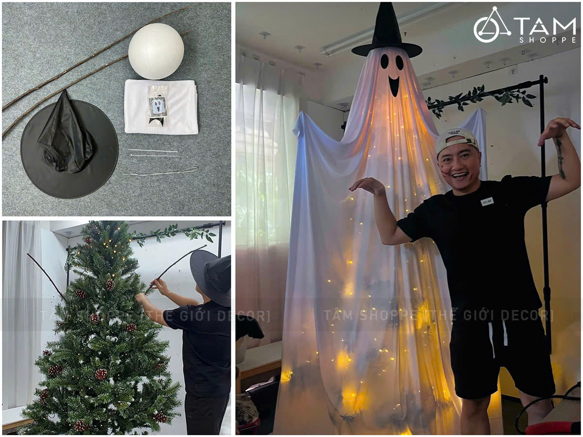 Set phụ kiện tự làm con ma vải cute bằng cây thông Noel cao 2m [Độc đáo - Dễ làm] trang trí đẹp mắt. Đồ trang trí Halloween là những vật dụng, mô hình hoặc phụ kiện được dùng để tạo không khí rùng rợn, huyền bí, vui nhộn đặc trưng cho ngày lễ Halloween (31/10).