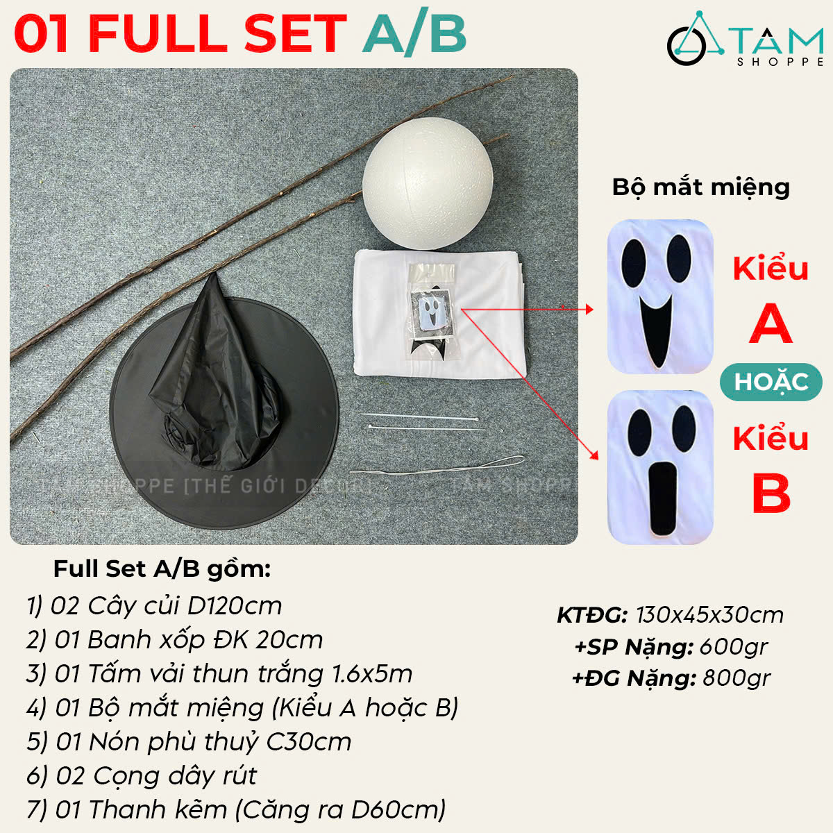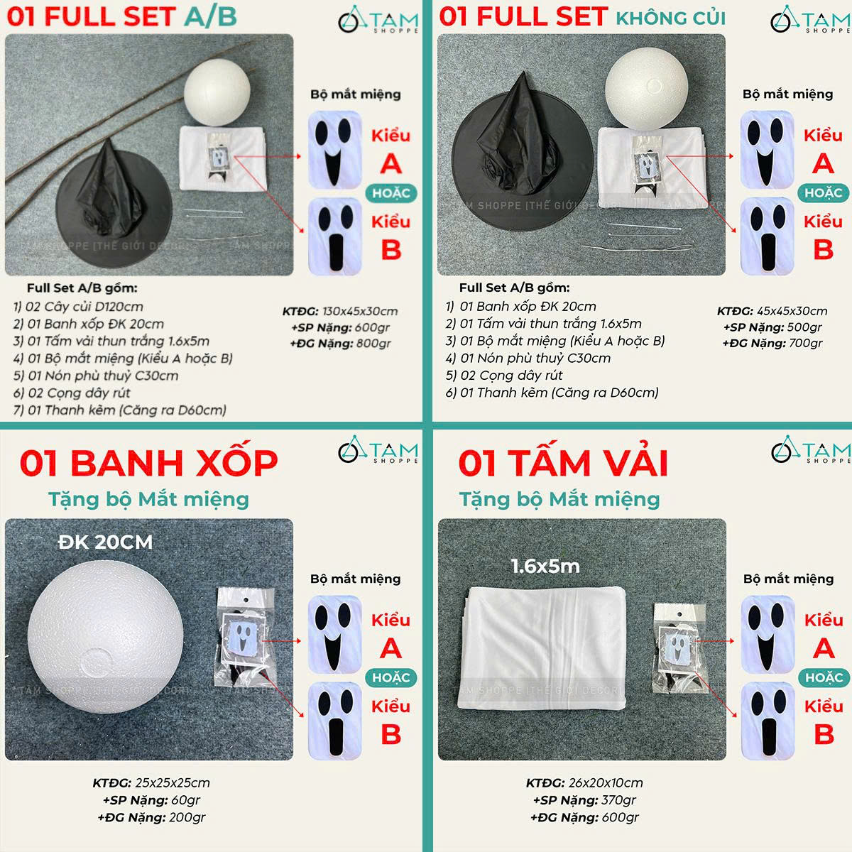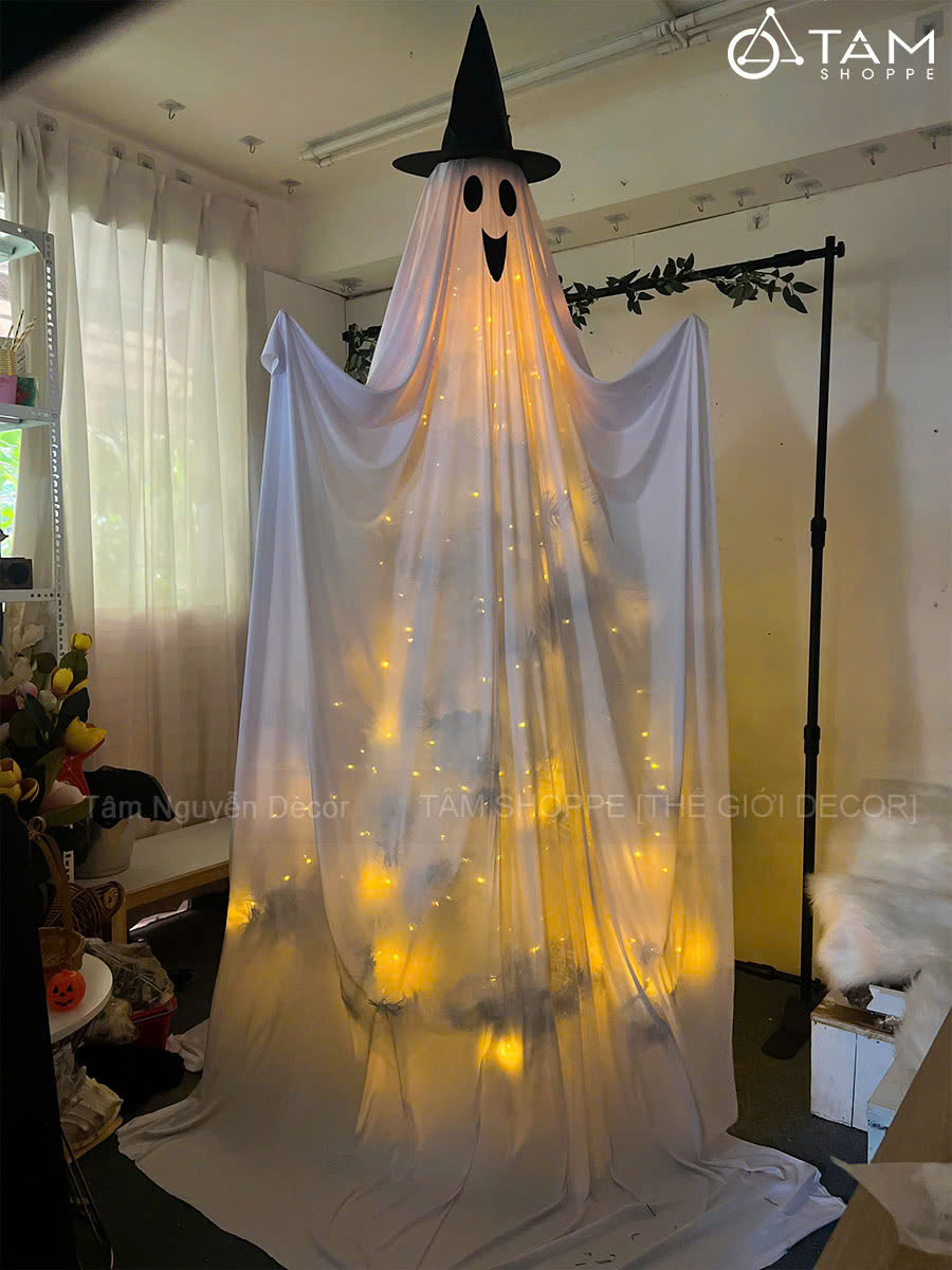 Set phụ kiện tự làm con ma vải cute bằng cây thông Noel cao 2m [Độc đáo - Dễ làm] trang trí đẹp mắt. Đồ trang trí Halloween là những vật dụng, mô hình hoặc phụ kiện được dùng để tạo không khí rùng rợn, huyền bí, vui nhộn đặc trưng cho ngày lễ Halloween (31/10).