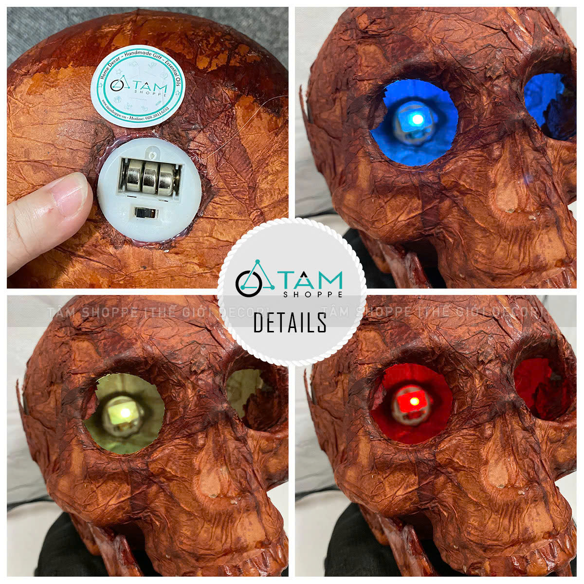 SP nhận được gồm 01 set 14 chi tiết đựng trong túi lưới, hoặc 01 đầu lâu có đèn Led tuỳ chọn phân loại.