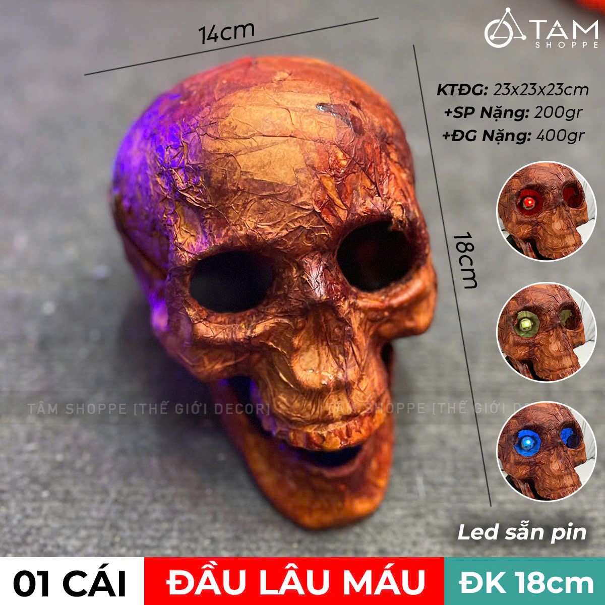 Đầu lâu lẻ có đèn led tự động đổi màu, sẵn pin bên trong.