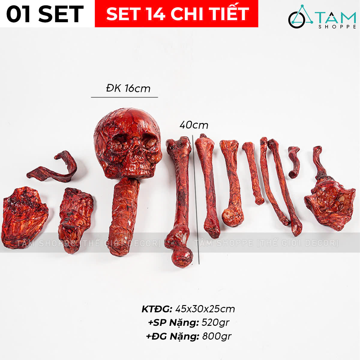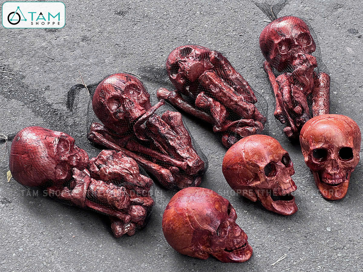 Set 14 chi tiết xương người máu me kinh dị trang trí [Như thật - Túi lưới] trang trí đẹp mắt.