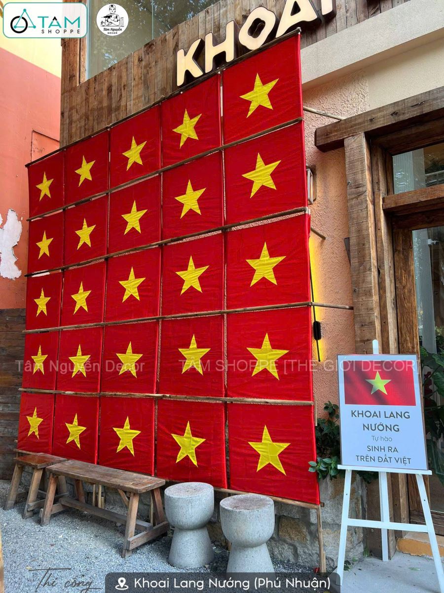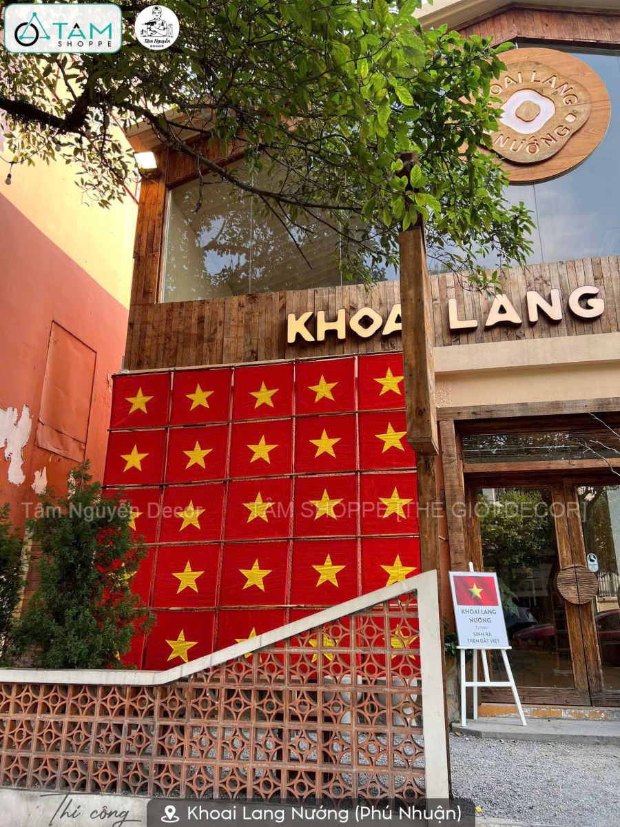 Gam màu đỏ – vàng nổi bật không chỉ thu hút ánh nhìn mà còn truyền tải trọn vẹn tinh thần tự hào dân tộc, đoàn kết và sức mạnh Việt Nam. Concept này phù hợp cho các không gian mở như quán cafe, cửa hàng, backdrop sự kiện hoặc khu check-in ngoài trời.