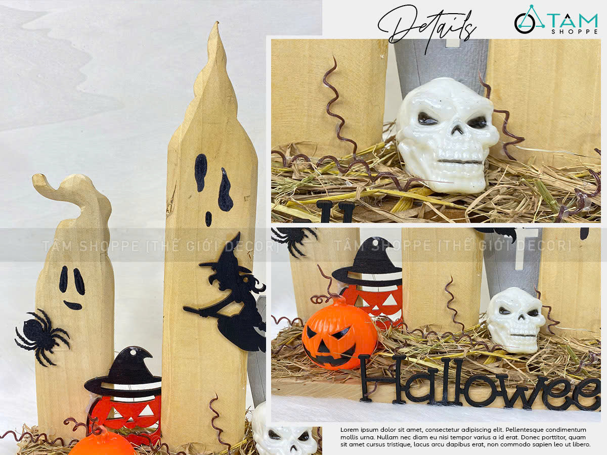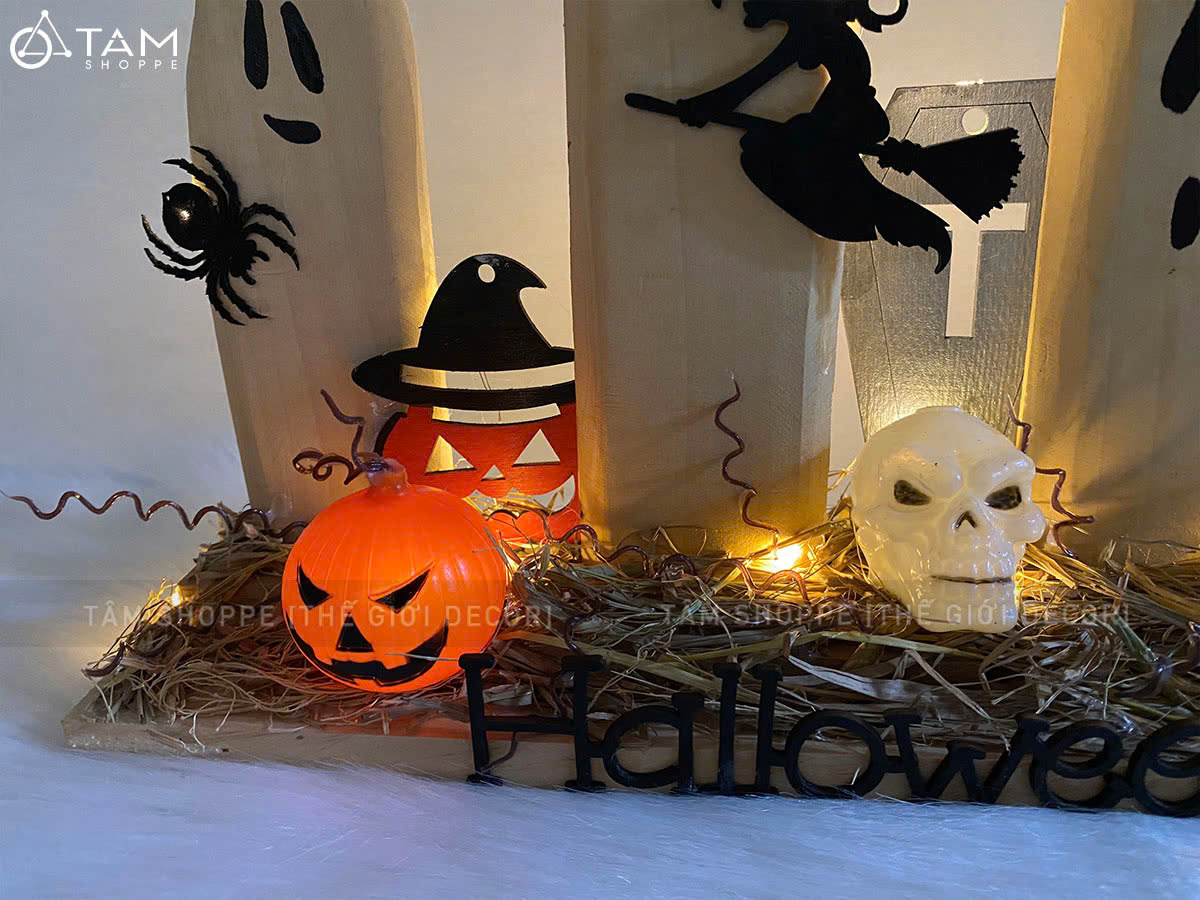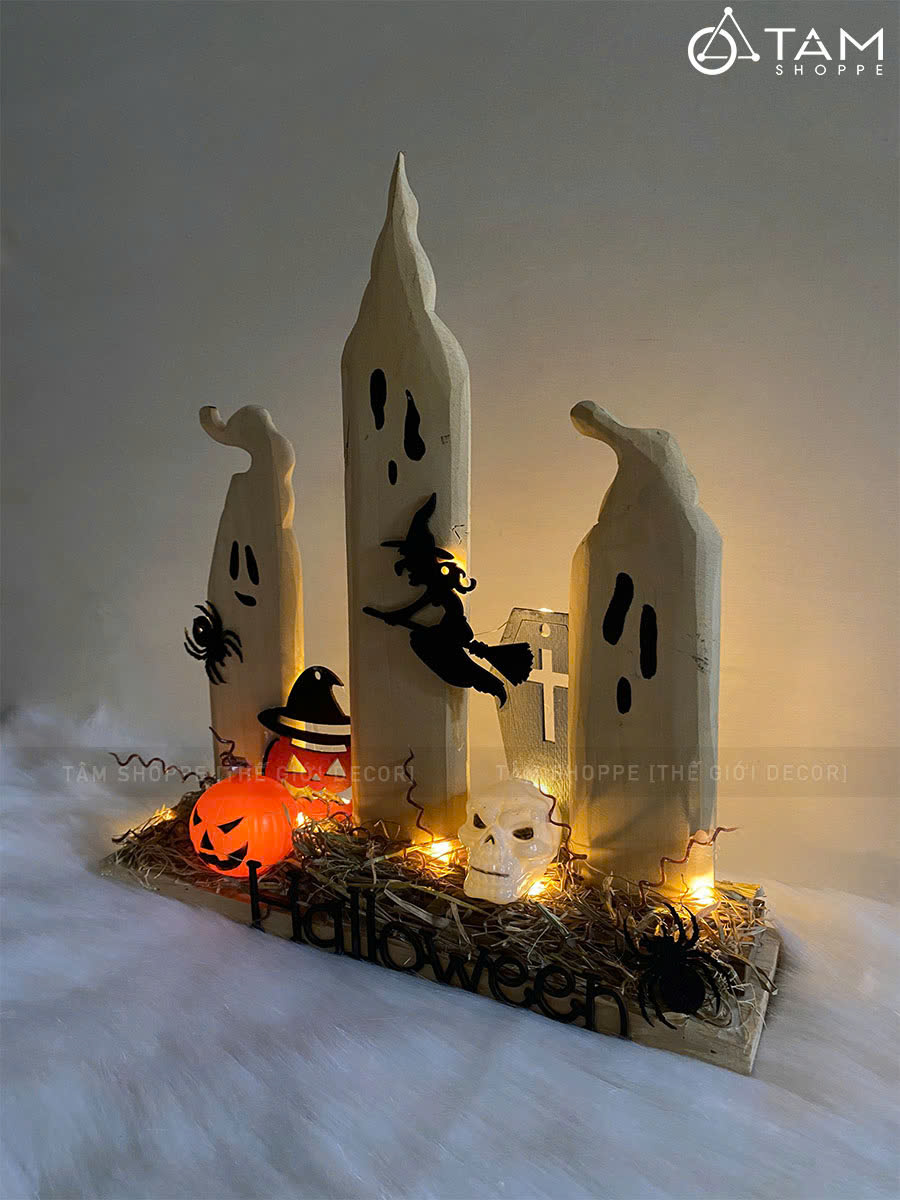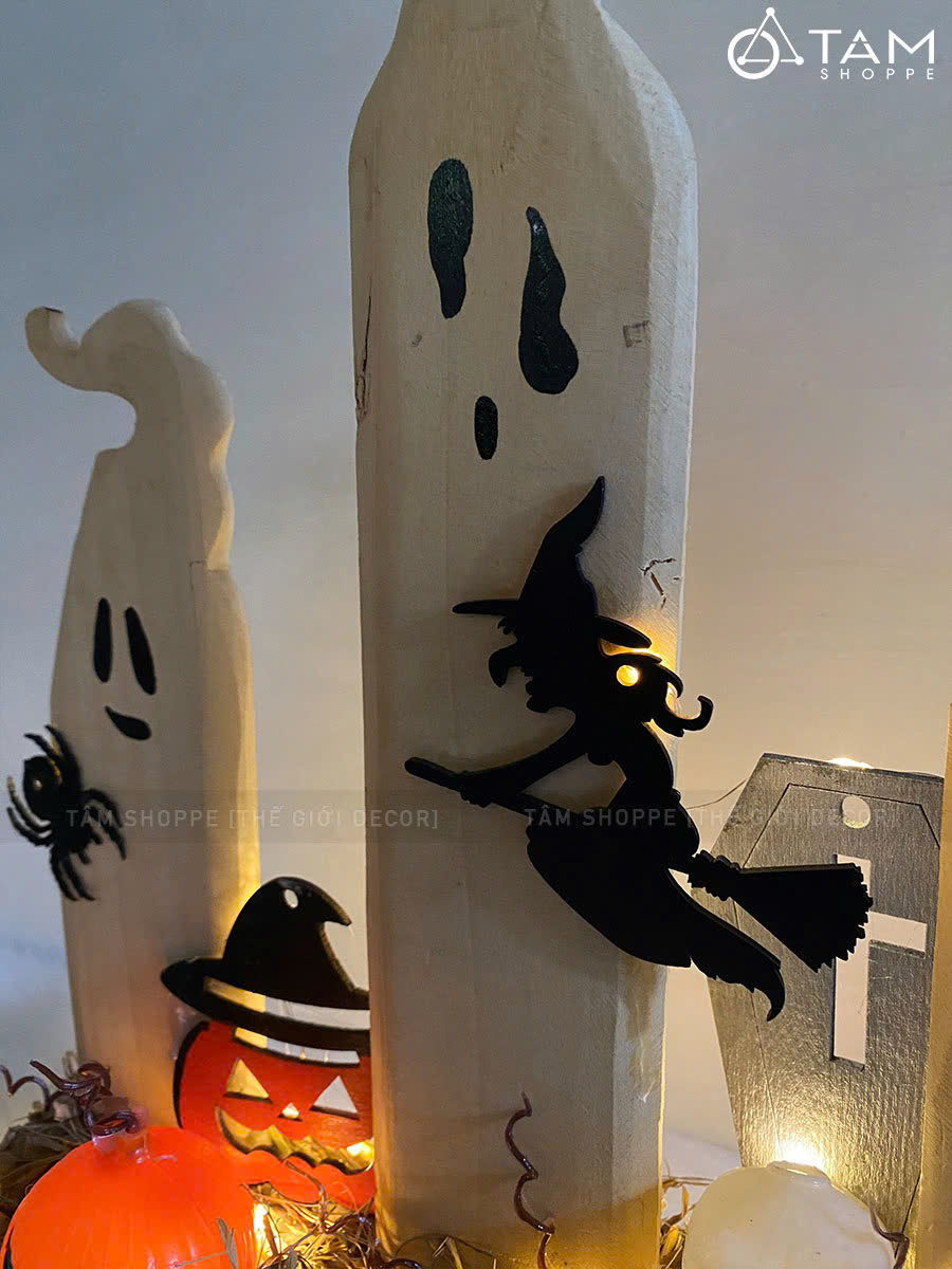 Tiểu cảnh để bàn HLW ba ma nến phù thuỷ [Bằng gỗ - có đèn] trang trí đẹp mắt. Đồ trang trí Halloween là những vật dụng, mô hình hoặc phụ kiện được dùng để tạo không khí rùng rợn, huyền bí, vui nhộn đặc trưng cho ngày lễ Halloween (31/10).