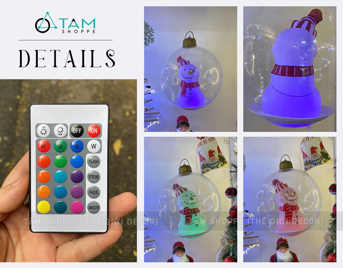 Trái châu làm bằng nhựa plastic dẻo mềm dày dặn, in hoạ tiết Giáng sinh sắc nét. Tuỳ theo loại sẽ có kèm phụ kiện nơ hoặc đèn led.
