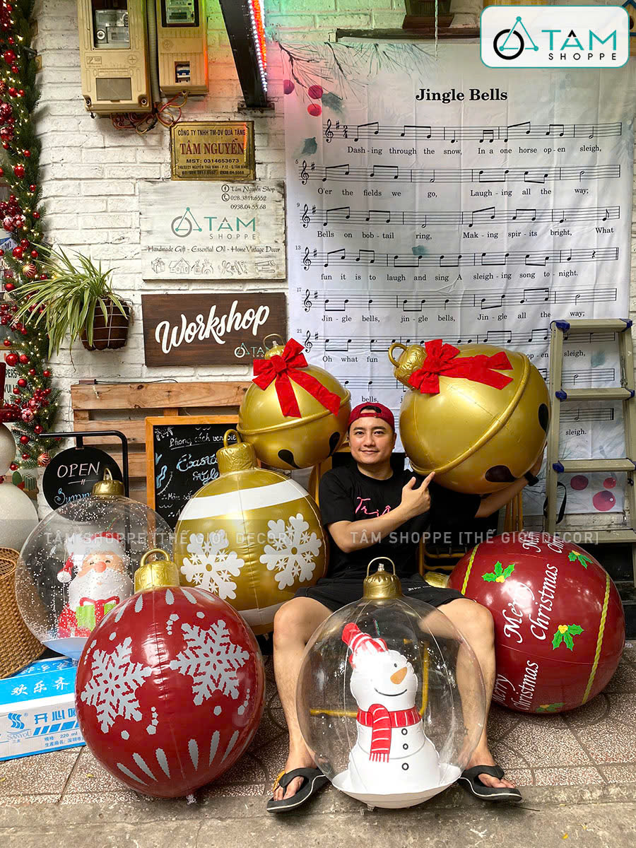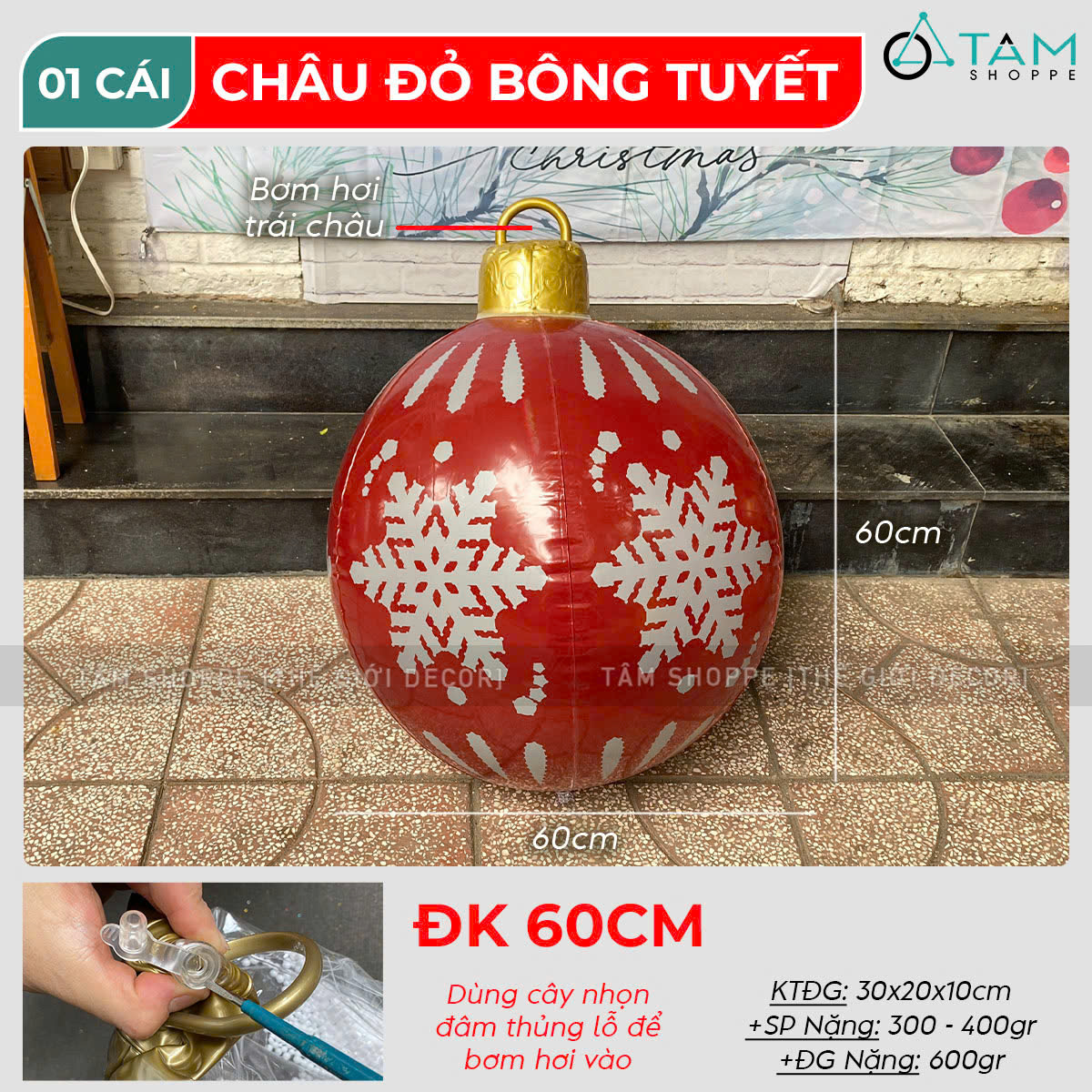 Trái châu Noel cỡ siêu to bơm hơi [ĐK45-60cm - Căng đẹp] trang trí đẹp mắt.