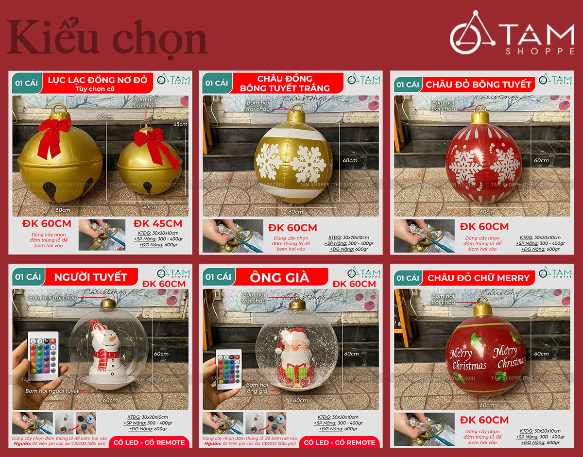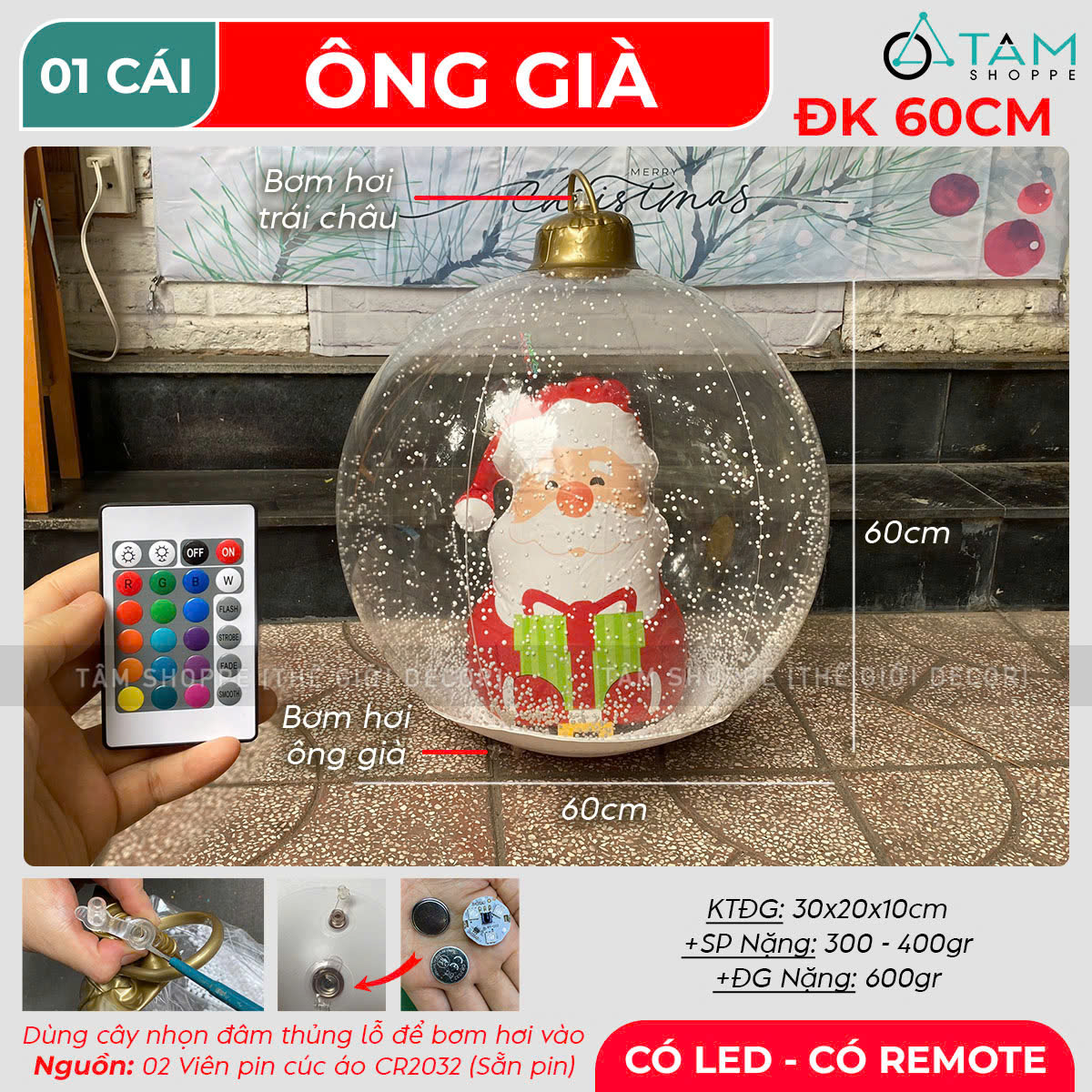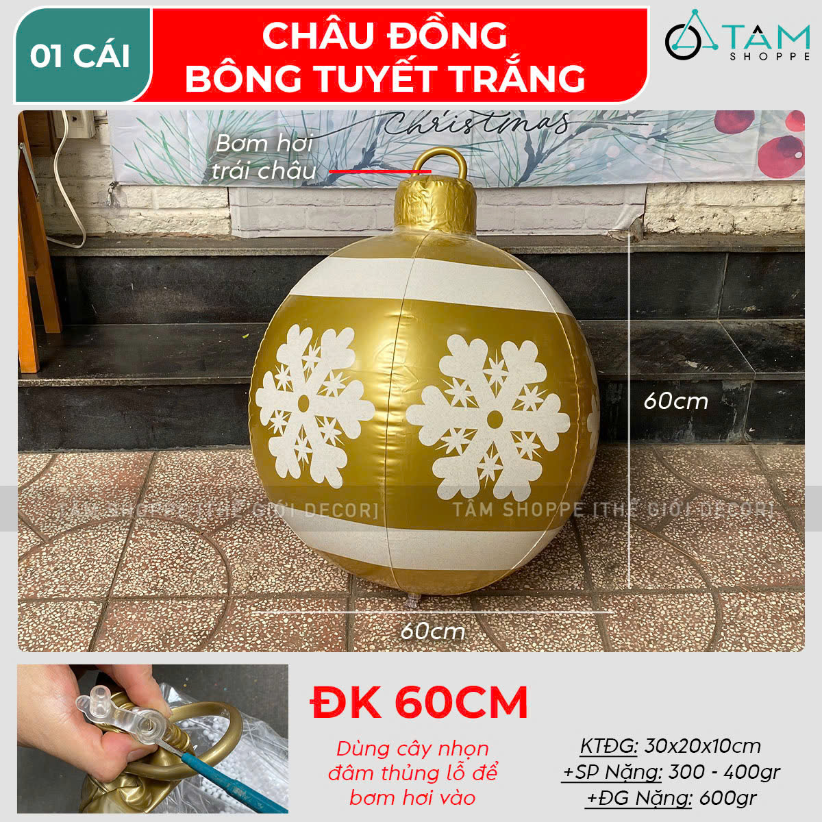 Trái châu Noel cỡ siêu to bơm hơi [ĐK45-60cm - Căng đẹp] trang trí đẹp mắt. Đồ trang trí Noel là các vật dụng, phụ kiện, hoặc mô hình được dùng để trang hoàng không gian trong dịp Giáng Sinh (Noel), nhằm tạo nên không khí ấm áp, vui tươi và mang đậm sắc màu lễ hội.