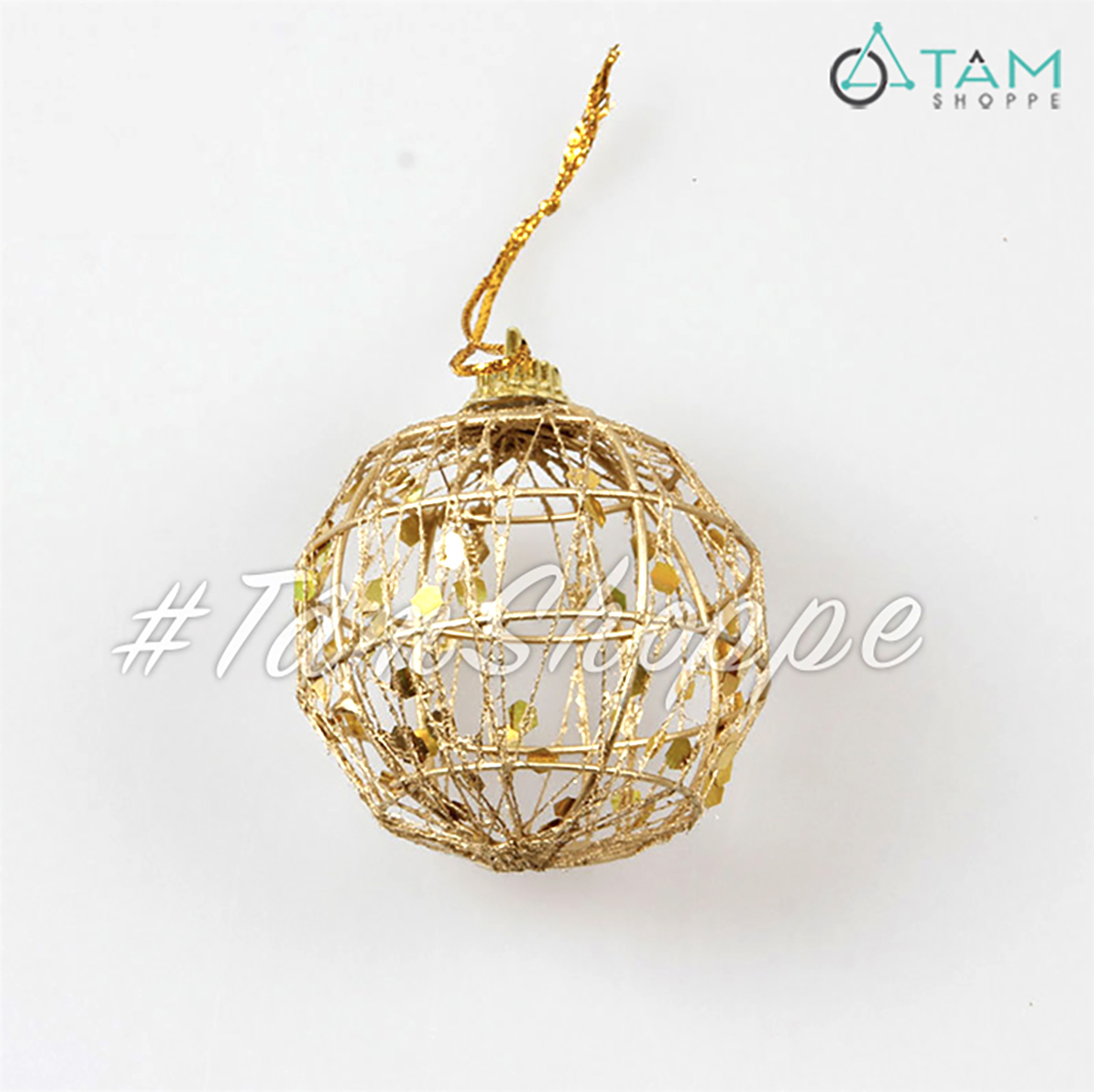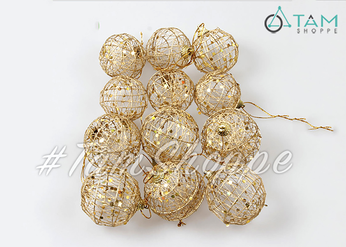 Hộp 06 trái châu Noel lưới kẽm vàng gold [2 cỡ - lấp lánh] trang trí đẹp mắt. Đồ trang trí Noel là các vật dụng, phụ kiện, hoặc mô hình được dùng để trang hoàng không gian trong dịp Giáng Sinh (Noel), nhằm tạo nên không khí ấm áp, vui tươi và mang đậm sắc màu lễ hội.