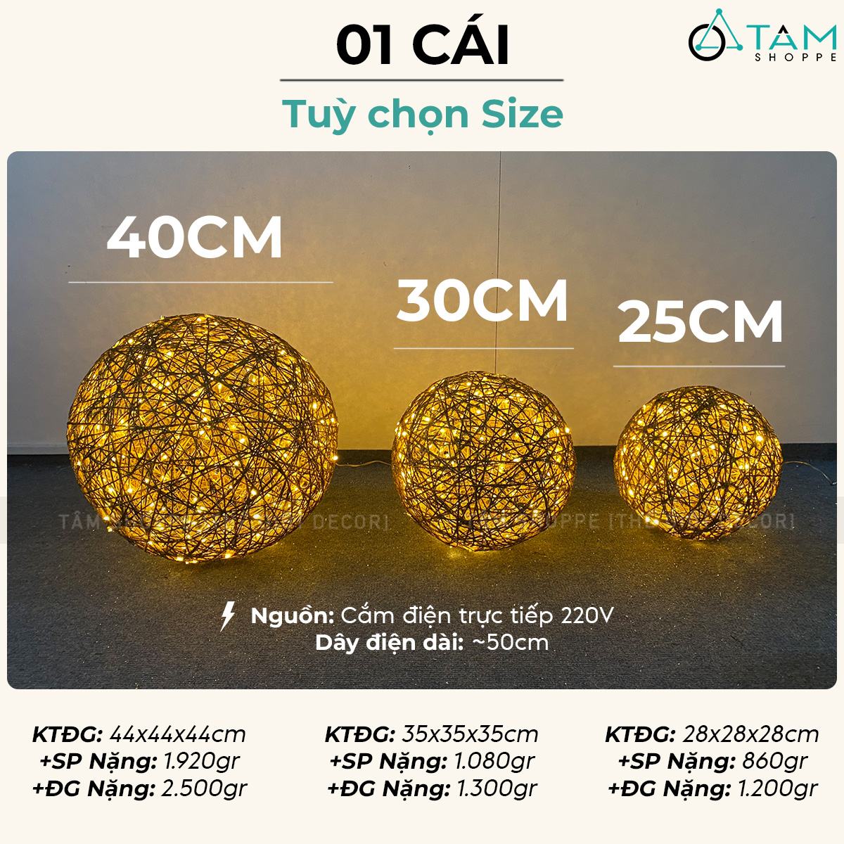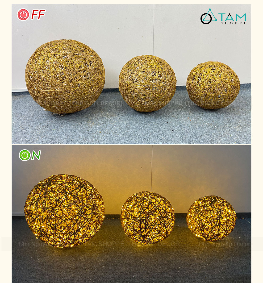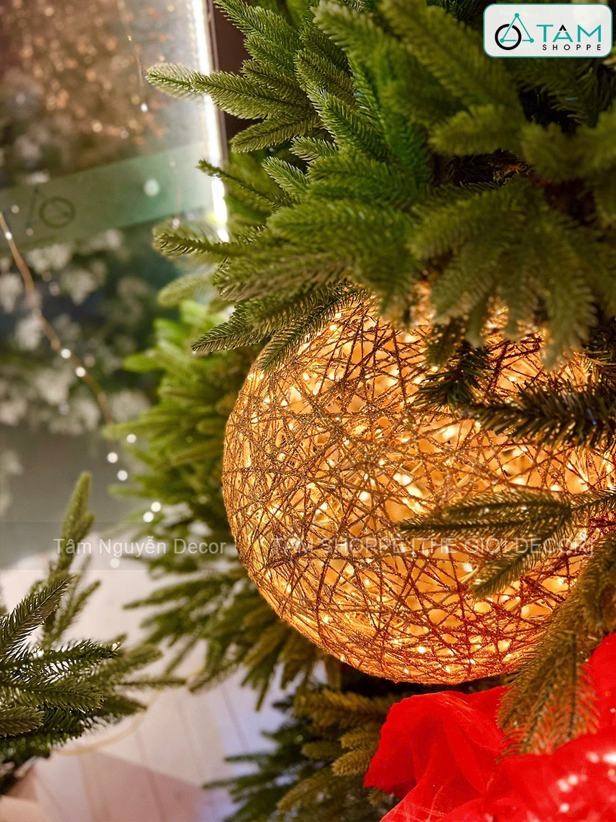 Trái châu Noel thép quấn đèn Led dây bố kim tuyến vàng Gold cỡ lớn trang trí đẹp mắt