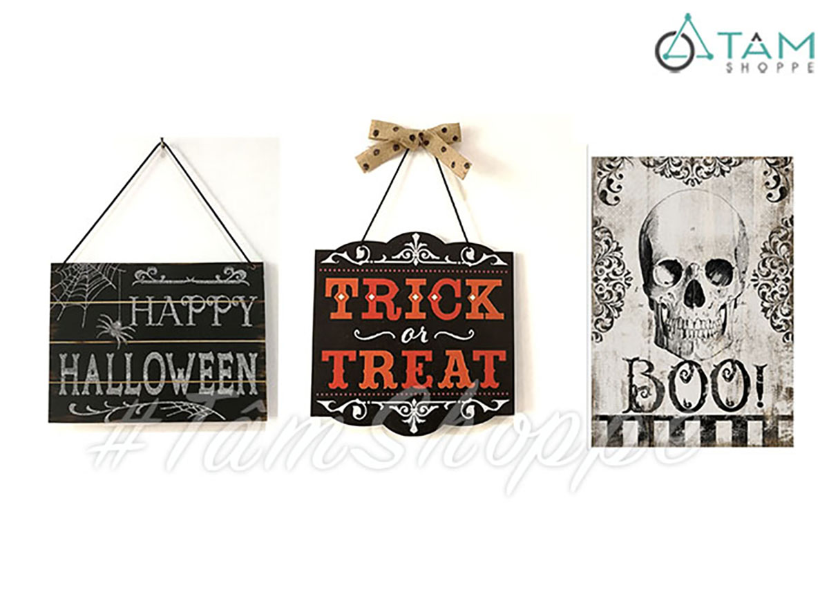 Tranh gỗ Halloween ép giấy 3 kiểu [Dây treo - nền gỗ] trang trí đẹp mắt. Đồ trang trí Halloween là những vật dụng, mô hình hoặc phụ kiện được dùng để tạo không khí rùng rợn, huyền bí, vui nhộn đặc trưng cho ngày lễ Halloween (31/10).