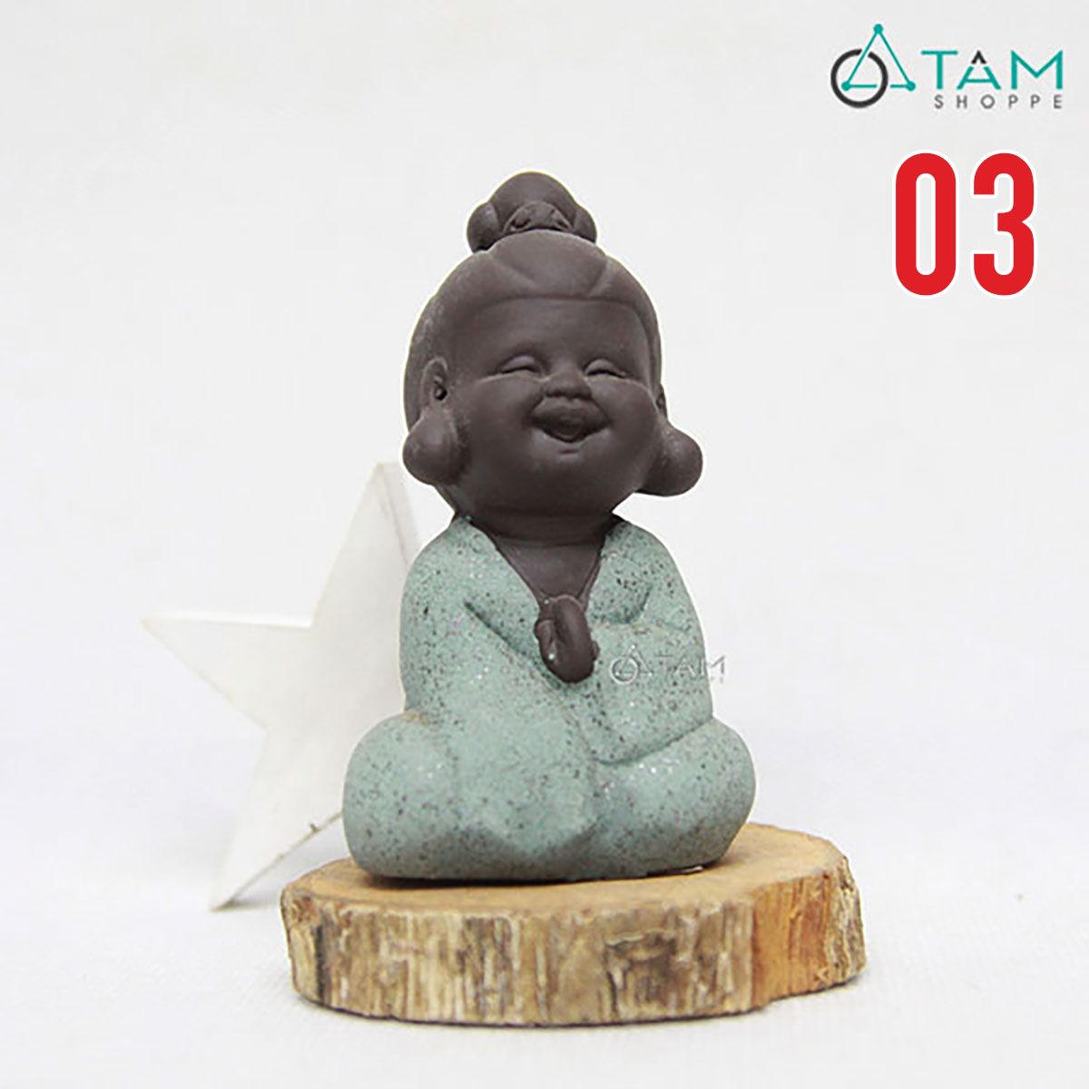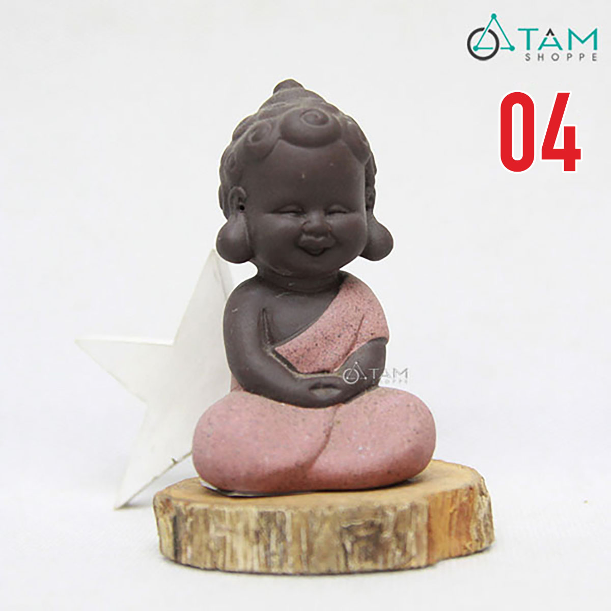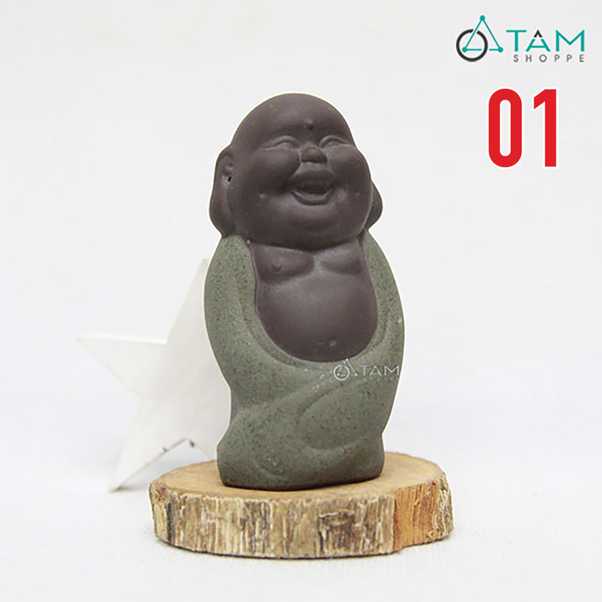Tượng phật vui vẻ mini gốm nâu [Cao 8cm/ nhiều kiểu] trang trí đẹp mắt