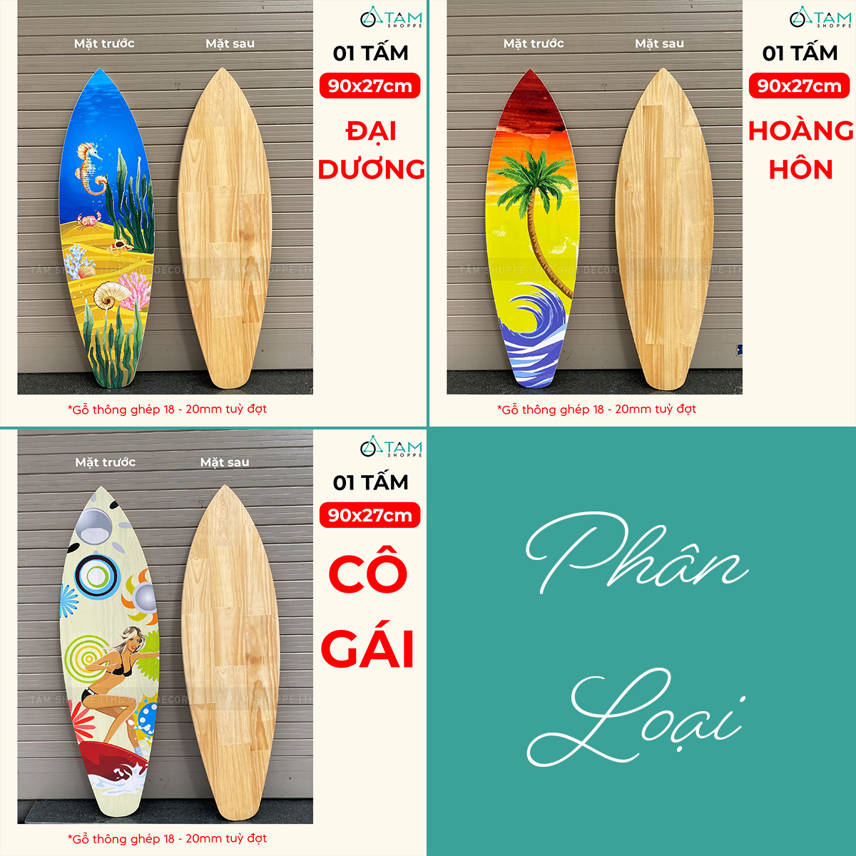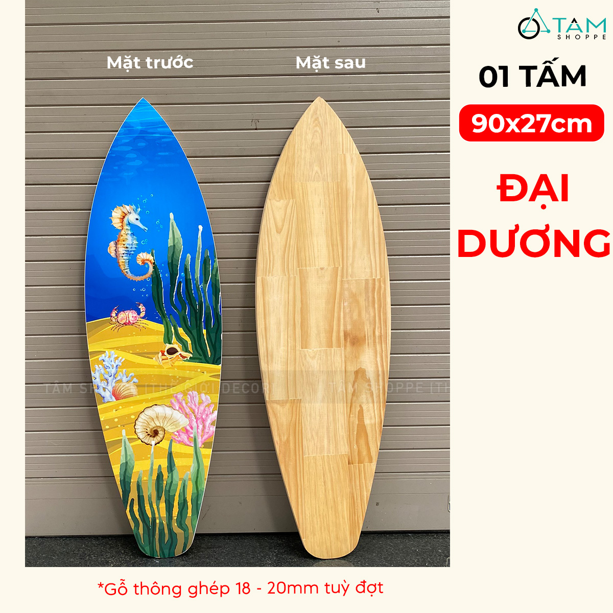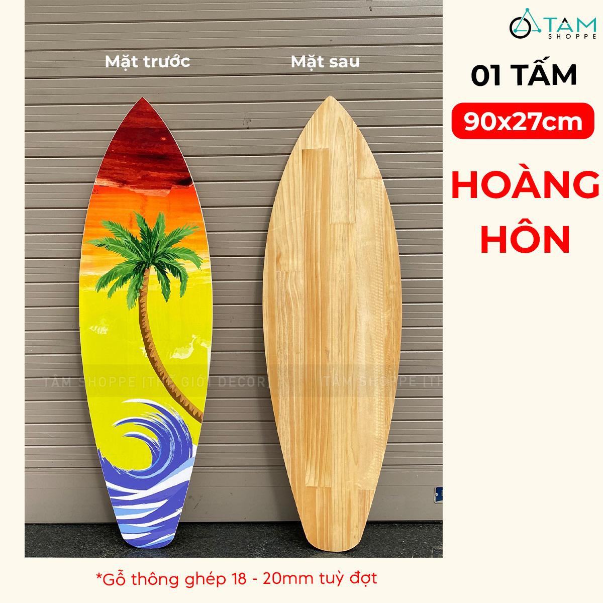 Ván lướt sóng decor chủ đề Đại Dương - Hoàng Hôn cao 90cm [Gỗ dày - chuẩn đẹp] trang trí đẹp mắt.