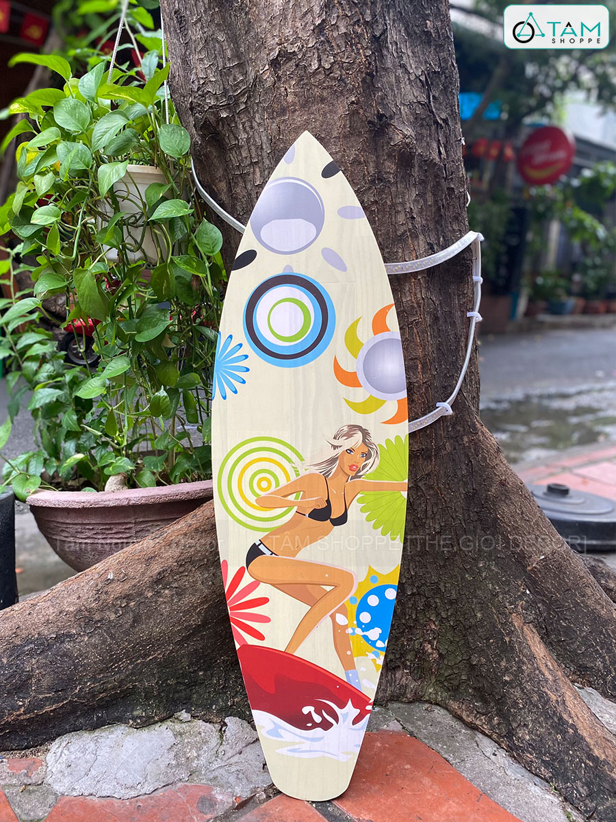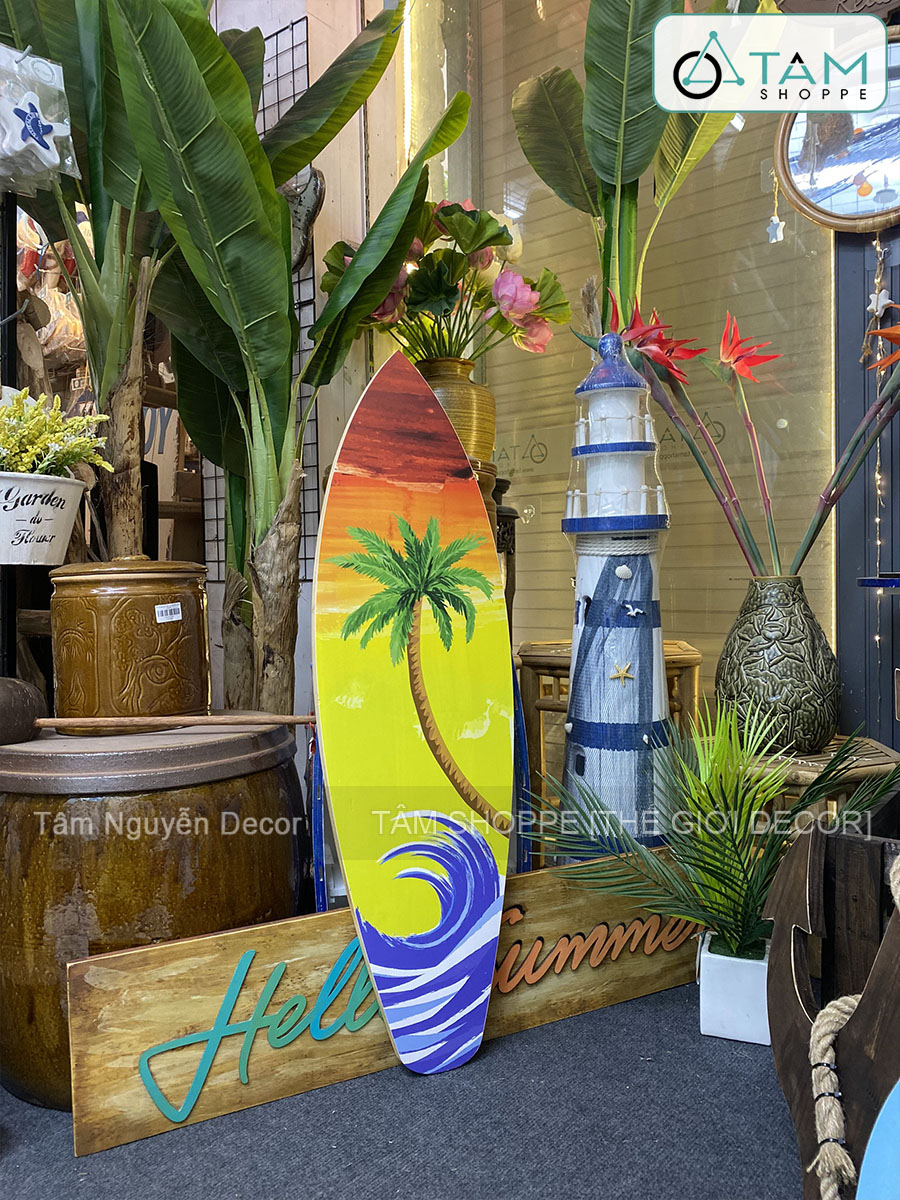 Ván lướt sóng tượng trưng cho biển, nắng, gió và sự tự do, rất phù hợp với phong cách: Coastal / Tropical, Bohemian, Surfer Style / Summer Vibes. Dùng trong resort, homestay ven biển, quán cà phê hoặc nhà ở để tạo không khí nghỉ dưỡng, thư giãn.