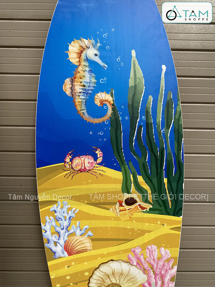 Ván lướt sóng decor chủ đề Đại Dương - Hoàng Hôn cao 90cm [Gỗ dày - chuẩn đẹp] trang trí đẹp mắt. Tấm ván lướt sóng decor (surfboard) là loại được thiết kế không phải để sử dụng thực tế ngoài biển, mà để trưng bày hoặc trang trí không gian nội thất như quán cà phê, nhà hàng ven biển, studio chụp ảnh, nhà ở theo phong cách biển (coastal style), boho, hoặc vintage.