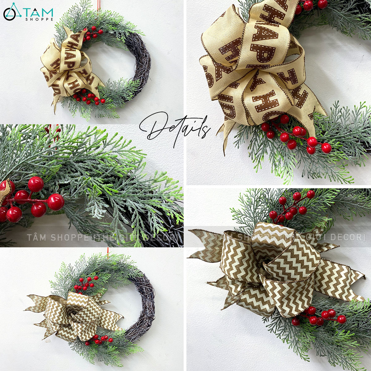 Vòng nguyệt quế Noel nửa vòng thắt nơ ĐK30cm trang trí đẹp mắt. Đồ trang trí Noel là các vật dụng, phụ kiện, hoặc mô hình được dùng để trang hoàng không gian trong dịp Giáng Sinh (Noel), nhằm tạo nên không khí ấm áp, vui tươi và mang đậm sắc màu lễ hội. trang trí đẹp mắt. Đồ trang trí Noel là các vật dụng, phụ kiện, hoặc mô hình được dùng để trang hoàng không gian trong dịp Giáng Sinh (Noel), nhằm tạo nên không khí ấm áp, vui tươi và mang đậm sắc màu lễ hội.