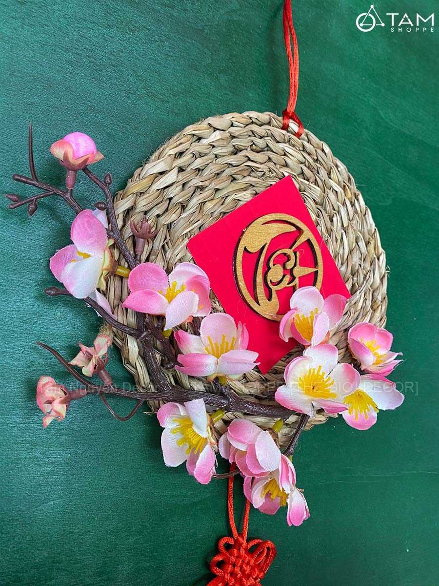 Vòng treo cửa Tết Lục Bình Mai Đào [3 Kiểu] ĐK16cm trang trí đẹp mắt.