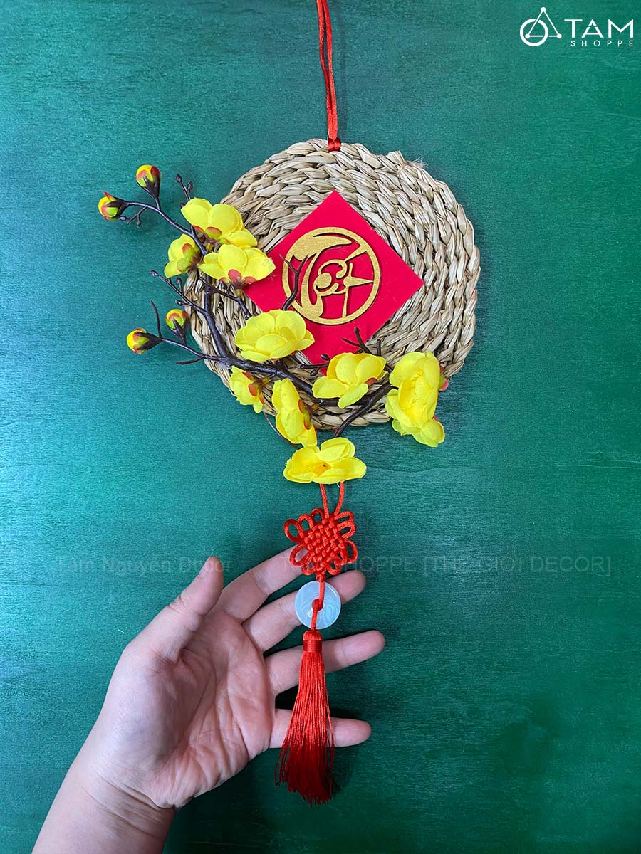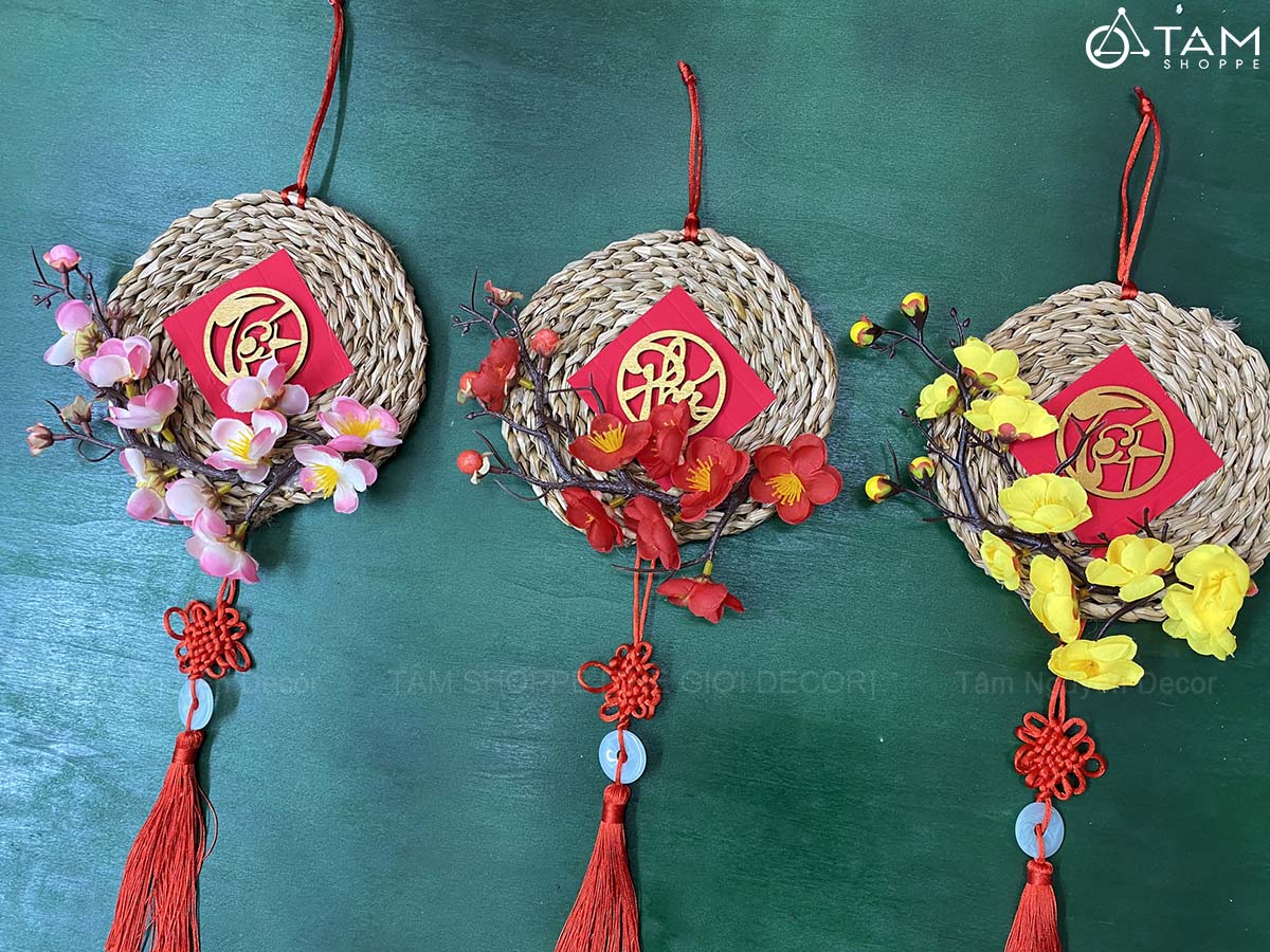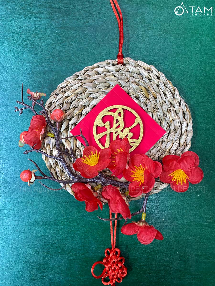 Vòng treo cửa Tết Lục Bình Mai Đào [3 Kiểu] ĐK16cm trang trí đẹp mắt. Đồ trang trí Tết là các vật dụng, phụ kiện, hoặc mô hình được dùng để trang hoàng không gian trong dịp lễ, nhằm tạo nên không khí ấm áp, vui tươi và mang đậm sắc màu lễ hội.
