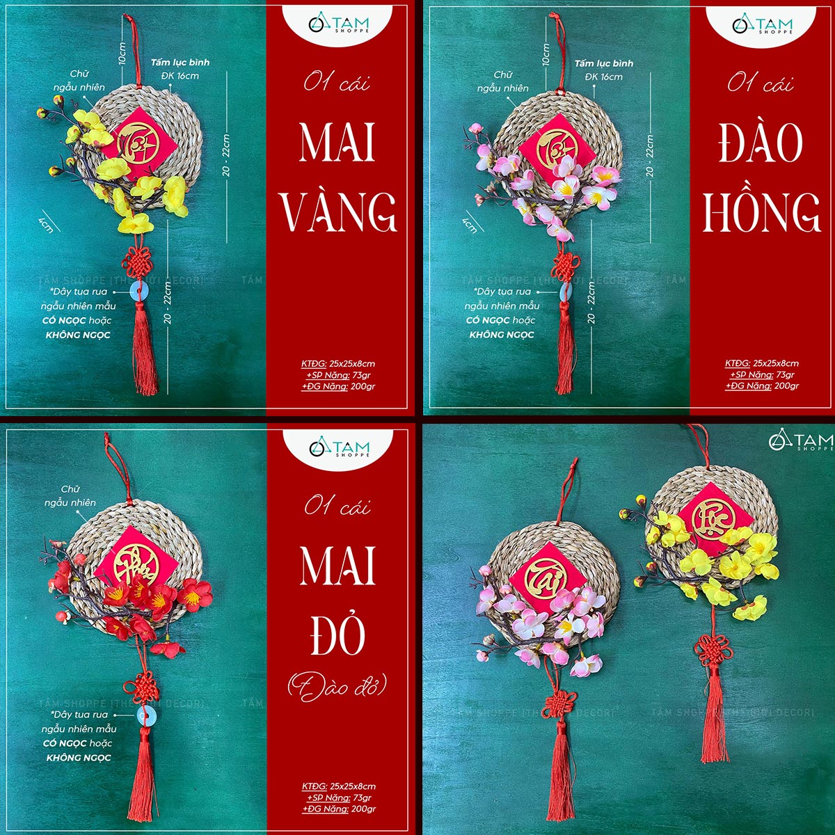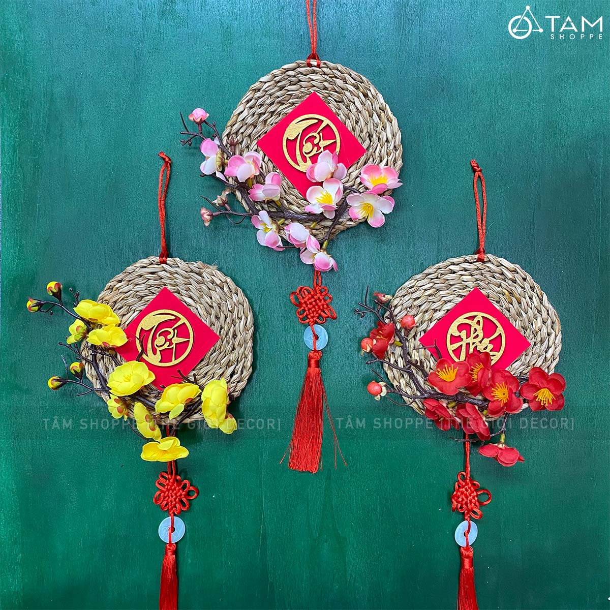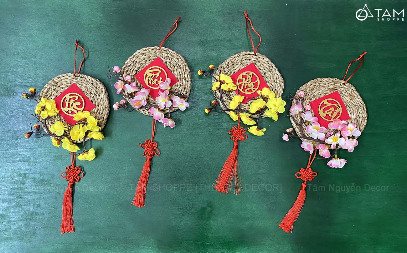 Vòng treo cửa Tết Lục Bình Mai Đào [3 Kiểu] ĐK16cm trang trí đẹp mắt. Đồ trang trí Tết là các vật dụng, phụ kiện, hoặc mô hình được dùng để trang hoàng không gian trong dịp lễ, nhằm tạo nên không khí ấm áp, vui tươi và mang đậm sắc màu lễ hội.