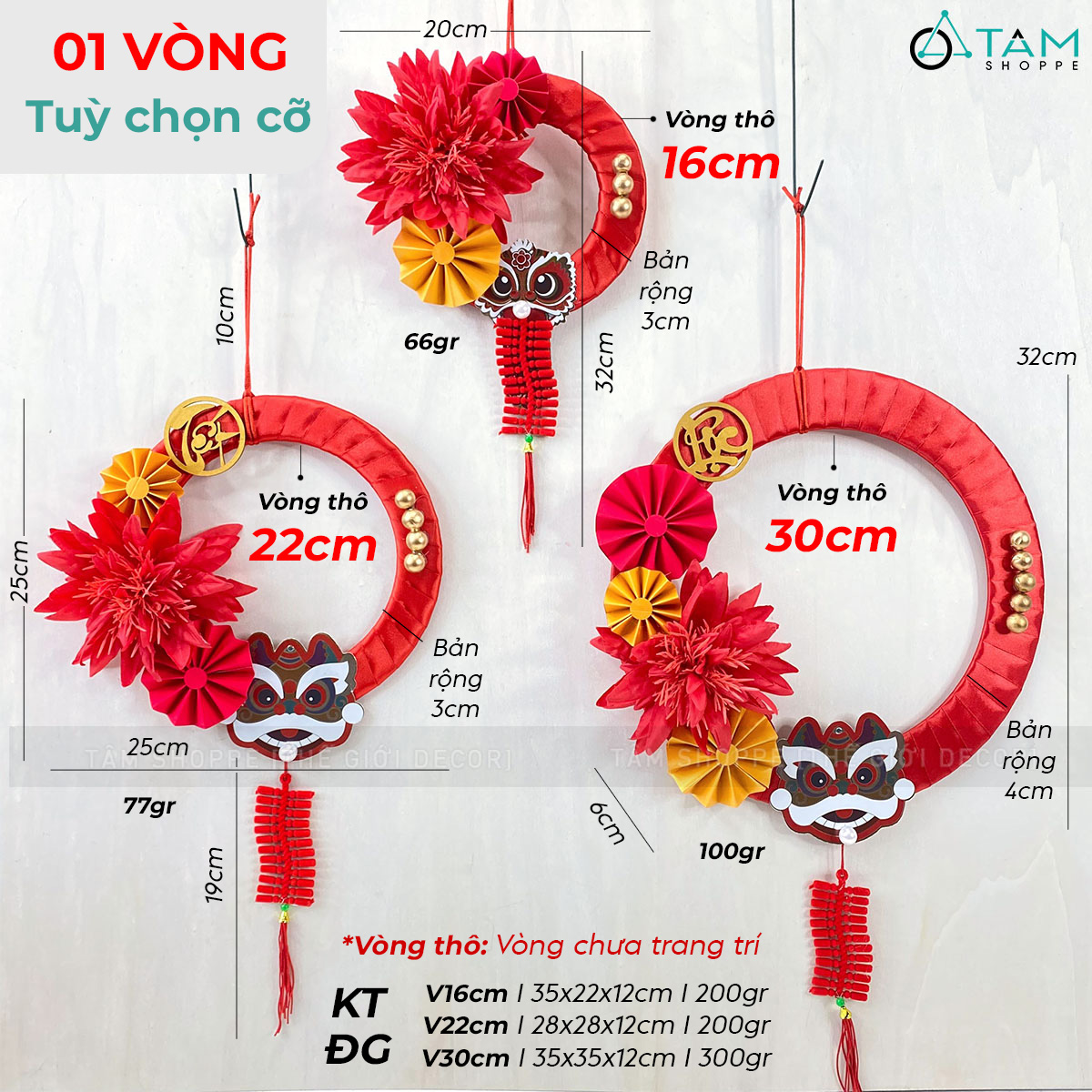 Vòng treo cửa Tết Hoa Cúc Râu ruy băng Đỏ Đầu Lân [Nhẹ - 3 Size] ĐK 16 - 30cm trang trí đẹp mắt. Đồ trang trí Tết là các vật dụng, phụ kiện, hoặc mô hình được dùng để trang hoàng không gian trong dịp lễ, nhằm tạo nên không khí ấm áp, vui tươi và mang đậm sắc màu lễ hội.