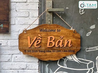 Bảng gỗ cắt cách điệu tên shop địa chỉ nhà theo yêu cầu [Chữ nổi - khắc laser] YC-BANGHIEU-10