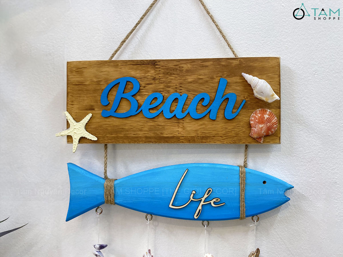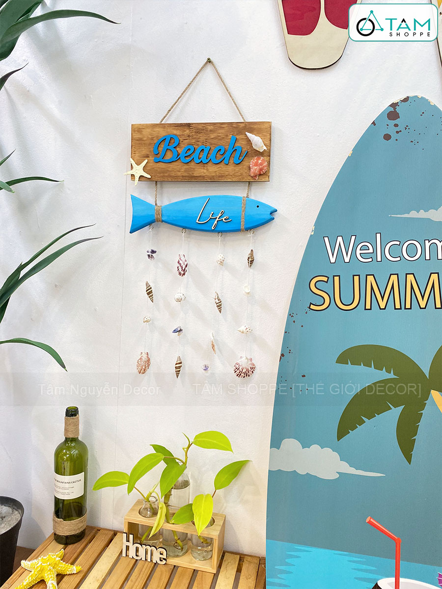 Bảng treo chủ đề biển Beach Life Cá Xanh treo ốc [dây thừng - vỏ ốc thật] KT55x32cm trang trí đẹp mắt. Bảng treo cửa thường thể hiện những thông điệp cần giới thiệu, vừa làm vật dụng trang trí. Hãy chào đón những vị khách quý của bạn bằng bảng treo cửa độc đáo này. Đảm bảo những vị khách đó sẽ cảm thấy thú vị và vui vẻ khi nhìn thấy chúng.