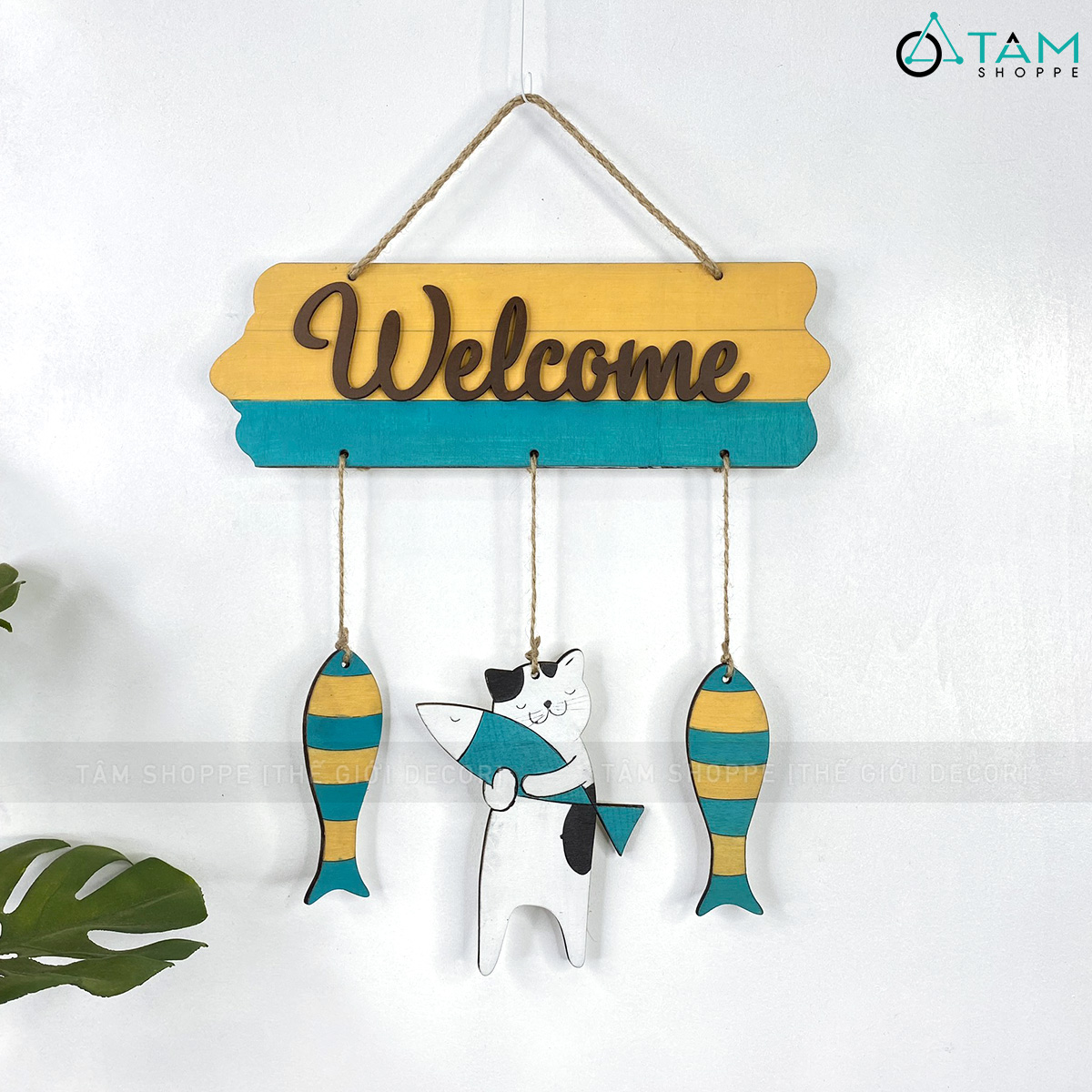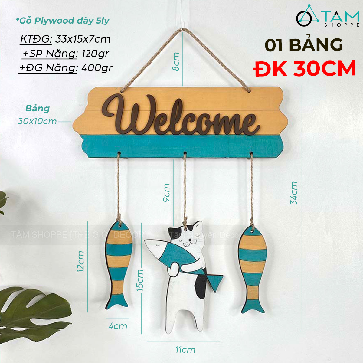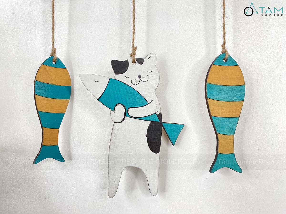 - Bảng và mèo, cá chất liệu gỗ Plywood 5ly, chữ welcome cắt gỗ dán nổi từ Plywood 3ly