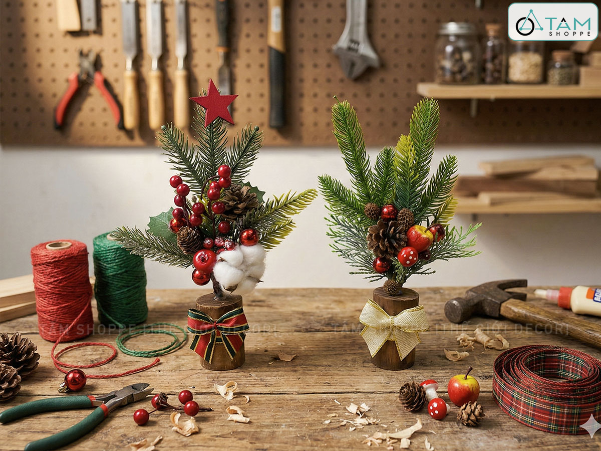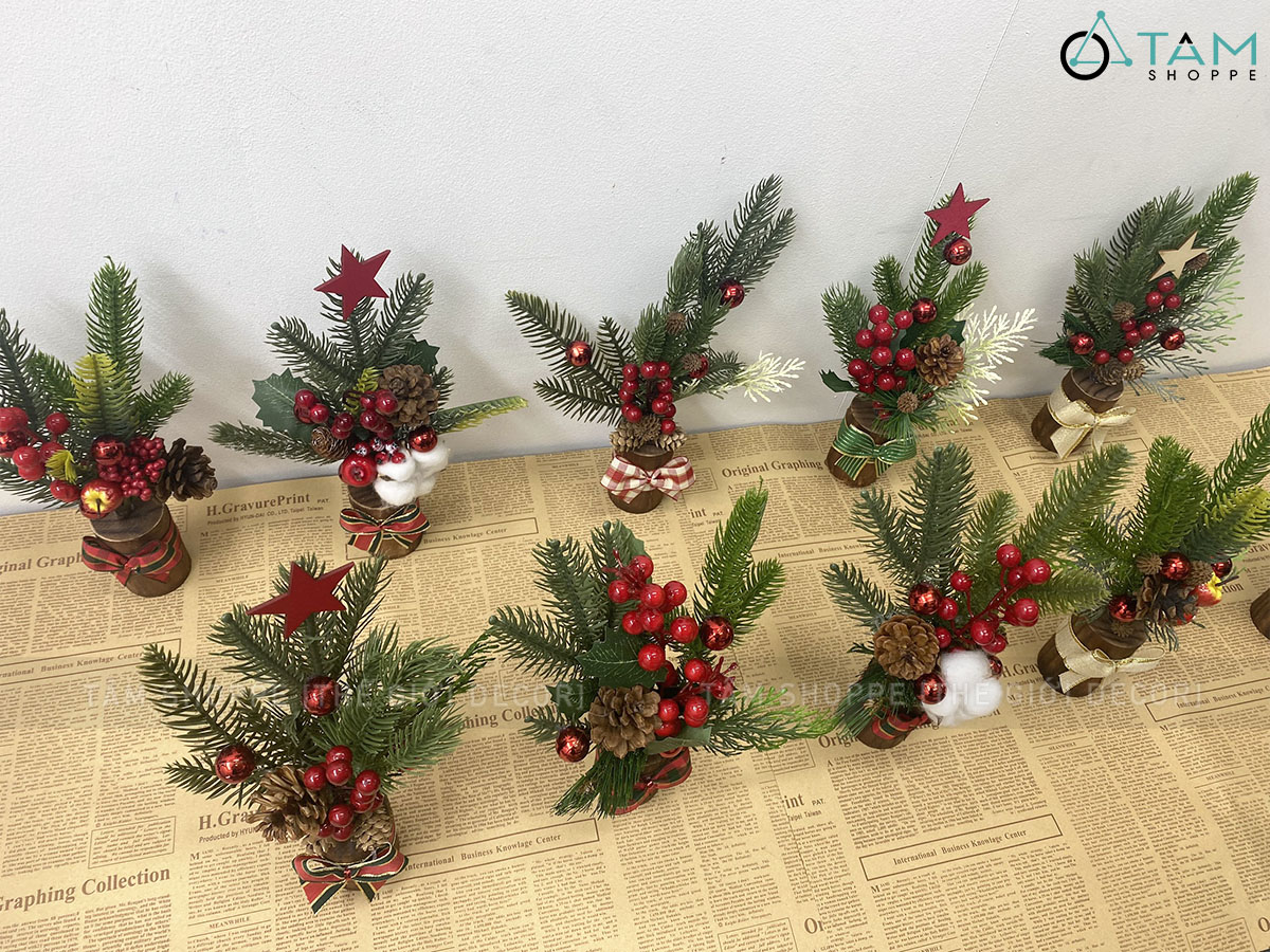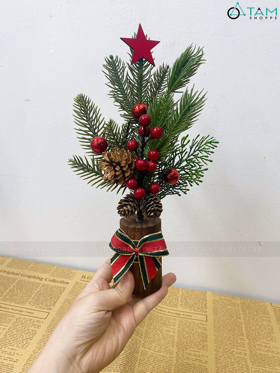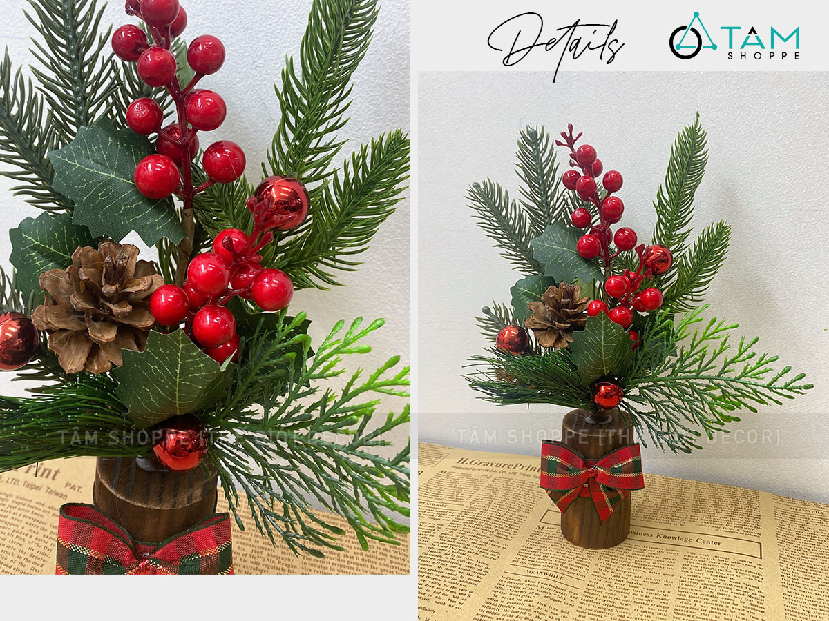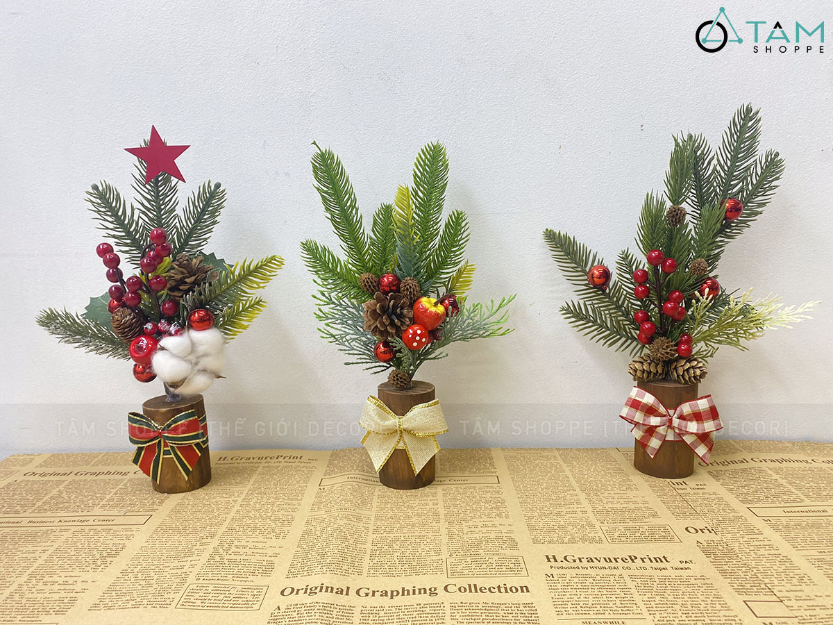 Chậu thông mini để bàn cành đỏ mọng cao 28cm đế gỗ [Nhiều kiểu] trang trí đẹp mắt. Đồ trang trí Noel là các vật dụng, phụ kiện, hoặc mô hình được dùng để trang hoàng không gian trong dịp Giáng Sinh (Noel), nhằm tạo nên không khí ấm áp, vui tươi và mang đậm sắc màu lễ hội.