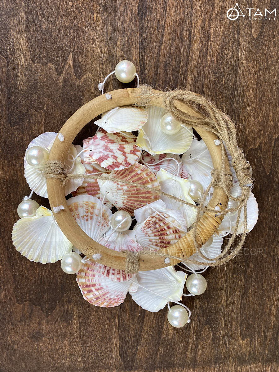 Chuông gió vòng mây sò ngọc [Tự nhiên - không mùi] D45cm trang trí đẹp mắt. Chuông gió trang trí không chỉ là một món đồ làm đẹp không gian mà còn mang nhiều ý nghĩa về phong thủy, tâm linh và thư giãn tinh thần. Âm thanh chuông gió giúp tâm hồn thư thái, giảm lo âu với tiếng phát ra tự nhiên, trong trẻo, dễ chịu.