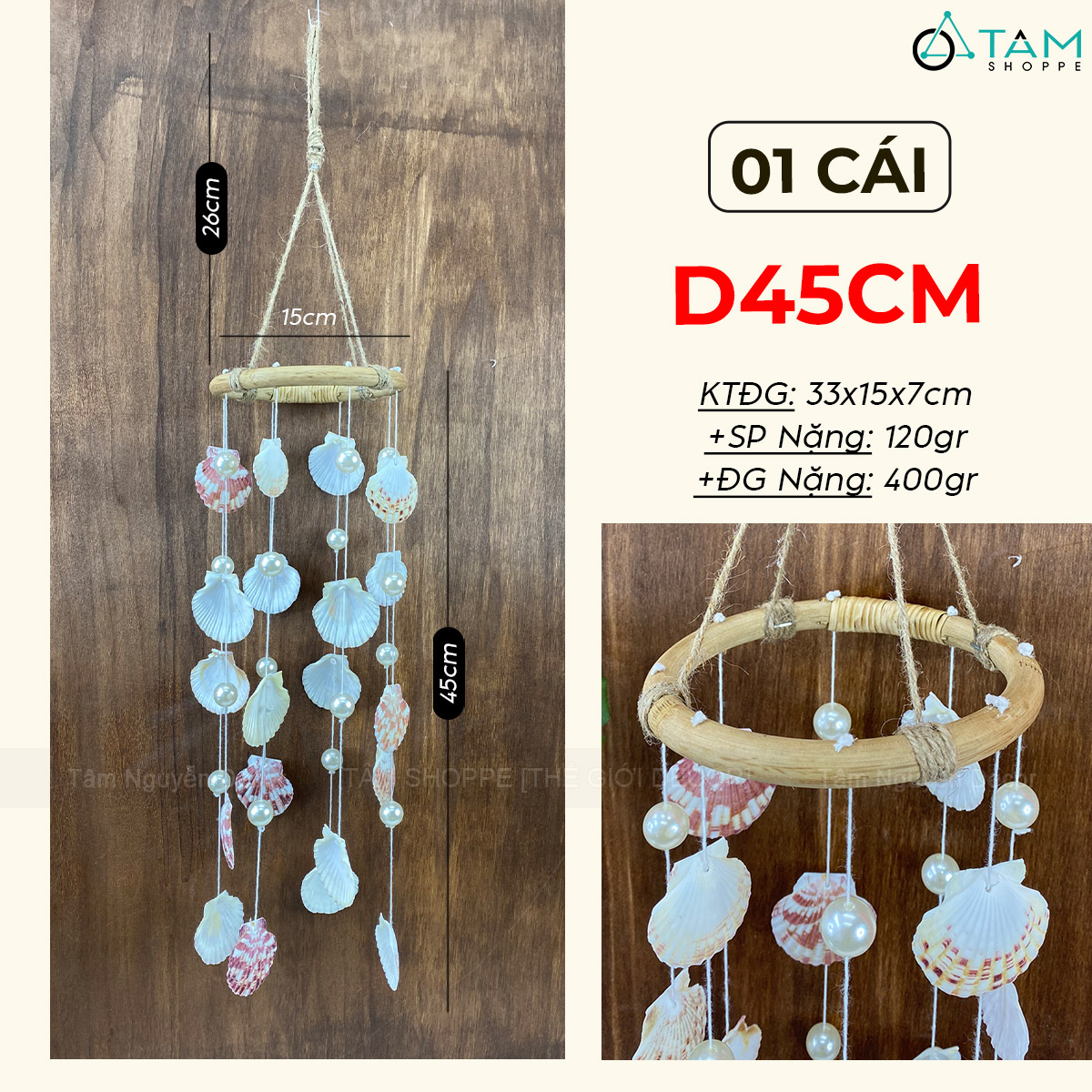 Chuông gió vòng mây sò ngọc [Tự nhiên - không mùi] D45cm trang trí đẹp mắt