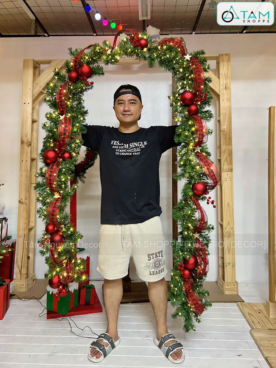 Chất liệu: Dây lá thông PVC, phụ kiện Handmade
