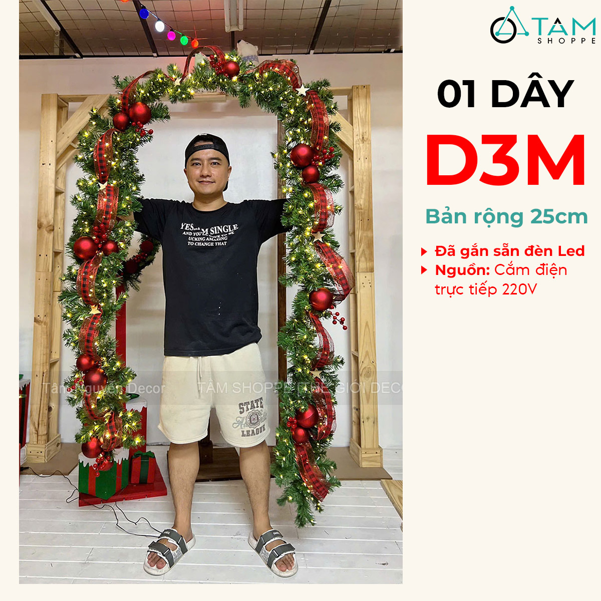 Dây lá thông Noel châu mờ ruy băng đỏ dài 3M [Bản lớn - Nhiều lá - Đèn đom đóm] trang trí đẹp mắt. Đồ trang trí Noel là các vật dụng, phụ kiện, hoặc mô hình được dùng để trang hoàng không gian trong dịp Giáng Sinh (Noel), nhằm tạo nên không khí ấm áp, vui tươi và mang đậm sắc màu lễ hội.