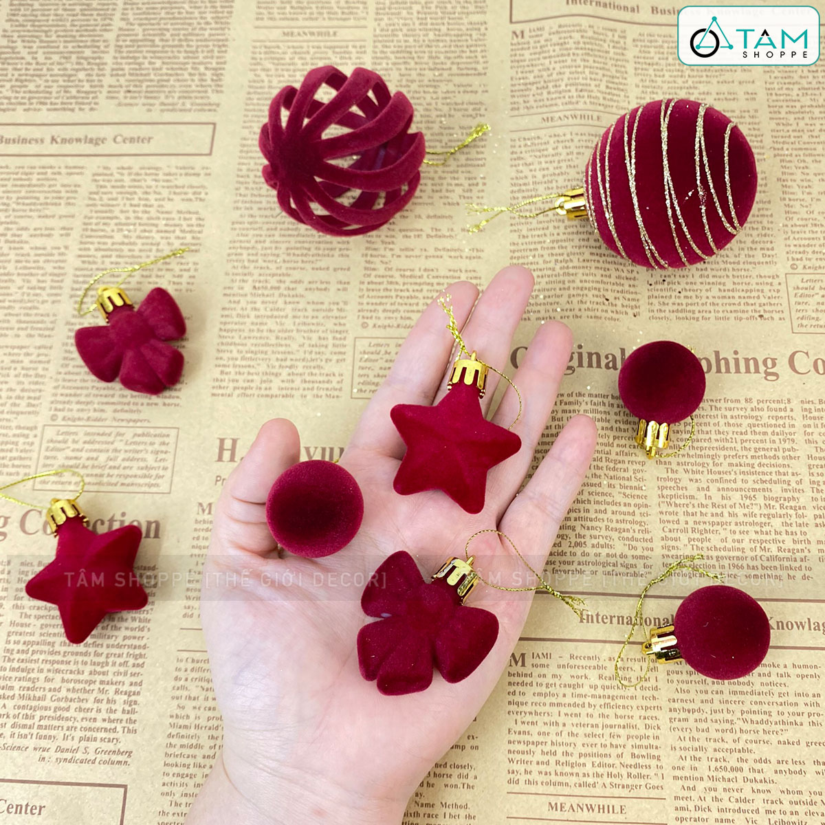 Hộp 35 phụ kiện châu nhung Đỏ phun kim tuyến Vàng [Nhiều kiểu - ĐK 3-6cm] trang trí đẹp mắt