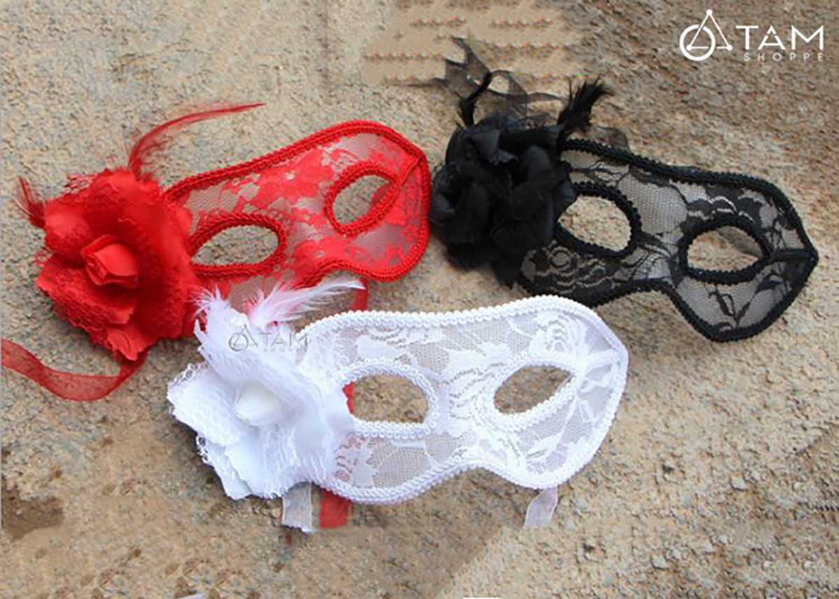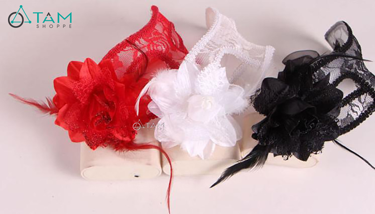 Mặt nạ dạ hội nửa mặt bông to ren xuyên thấu [Nửa mặt trên - 3 màu] hoá trang đẹp mắt. Đồ hoá trang Halloween là những trang phục, phụ kiện và đạo cụ dùng để biến hoá thành các nhân vật đặc trưng của lễ hội Halloween. Mục đích là tạo vẻ ngoài kỳ bí, rùng rợn hoặc vui nhộn, phù hợp với không khí lễ hội.