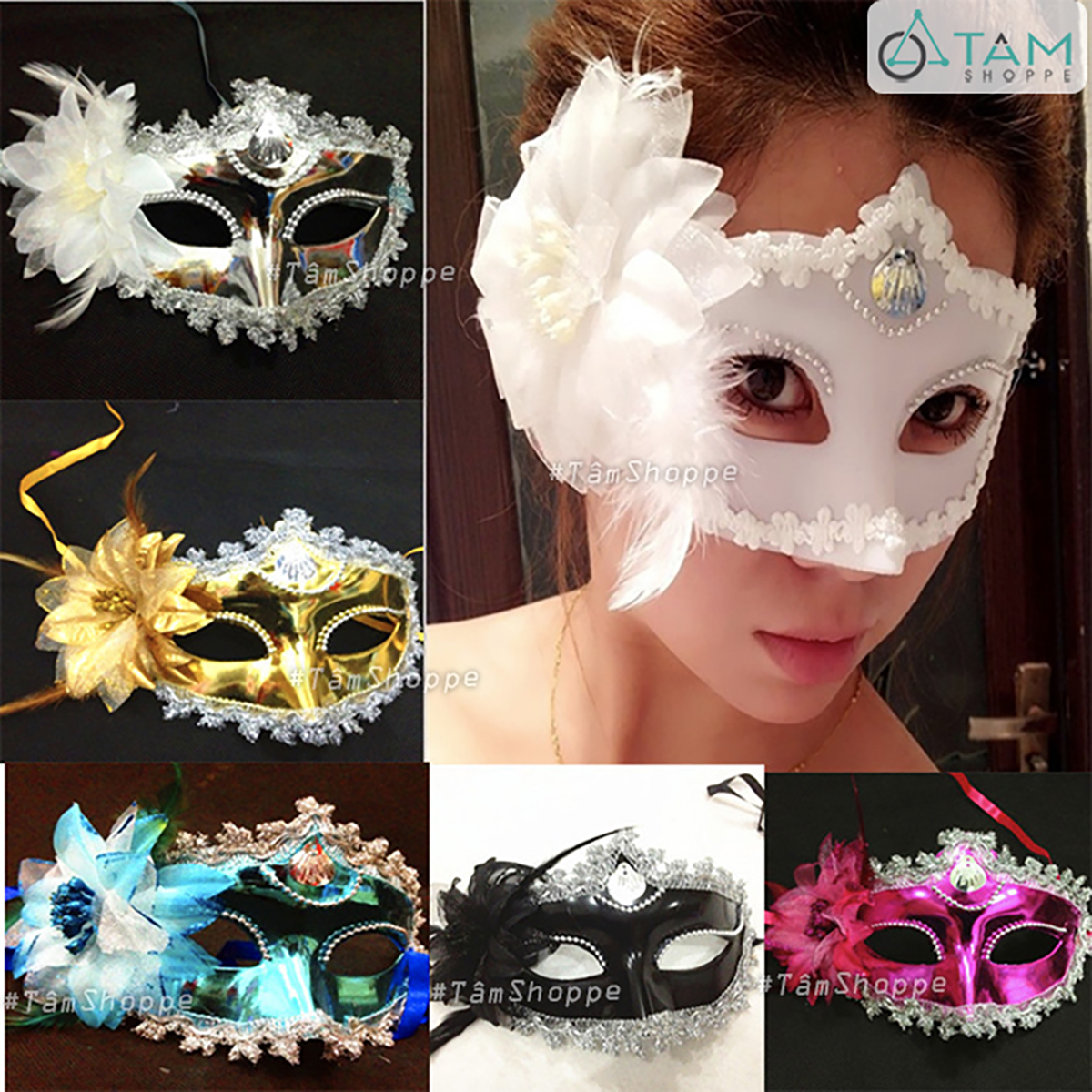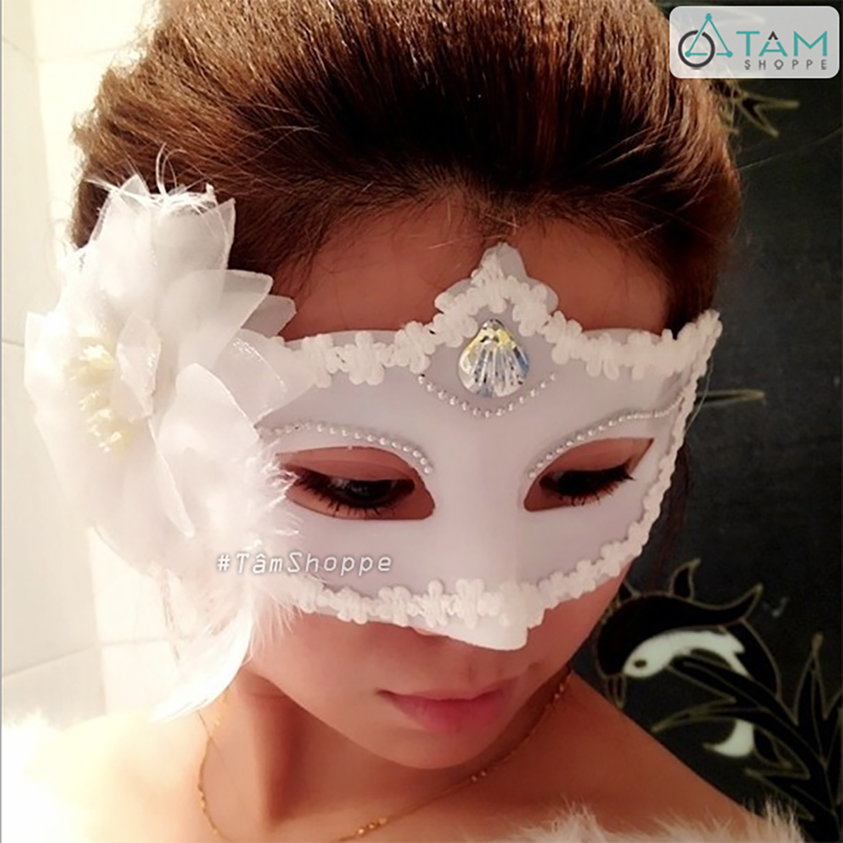 Mặt nạ dạ hội nửa mặt bông to vỏ sò [Nửa mặt trên - nhiều màu] hoá trang đẹp mắt.