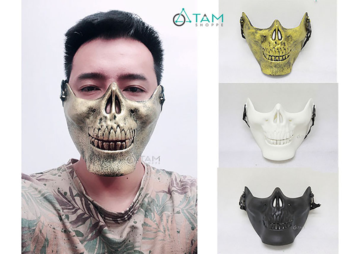 Mặt nạ nửa mặt đầu lâu nhựa Vintage [Nửa mặt dưới - nhiều màu] hoá trang đẹp mắt.