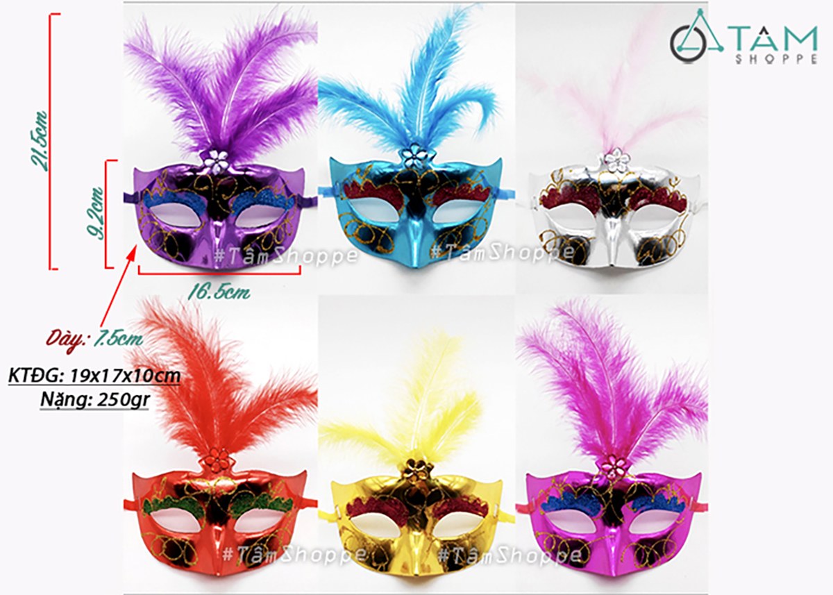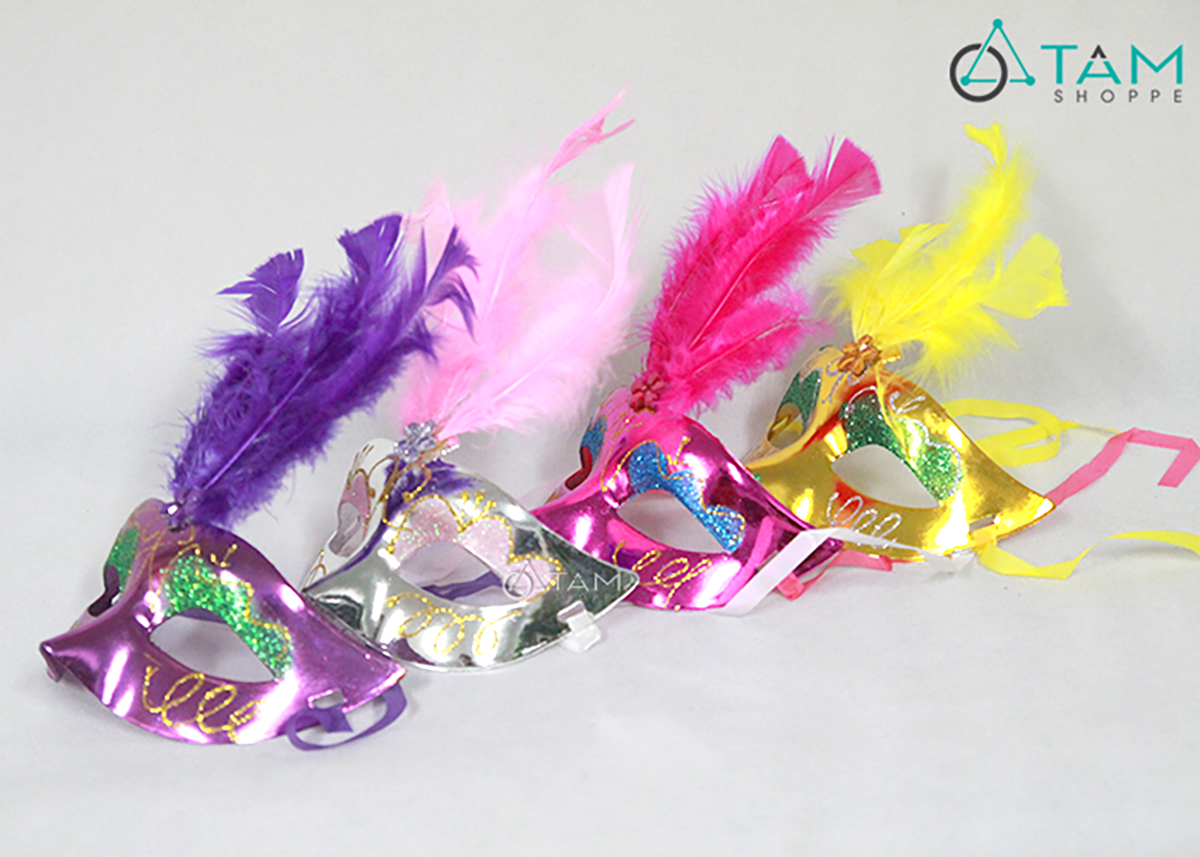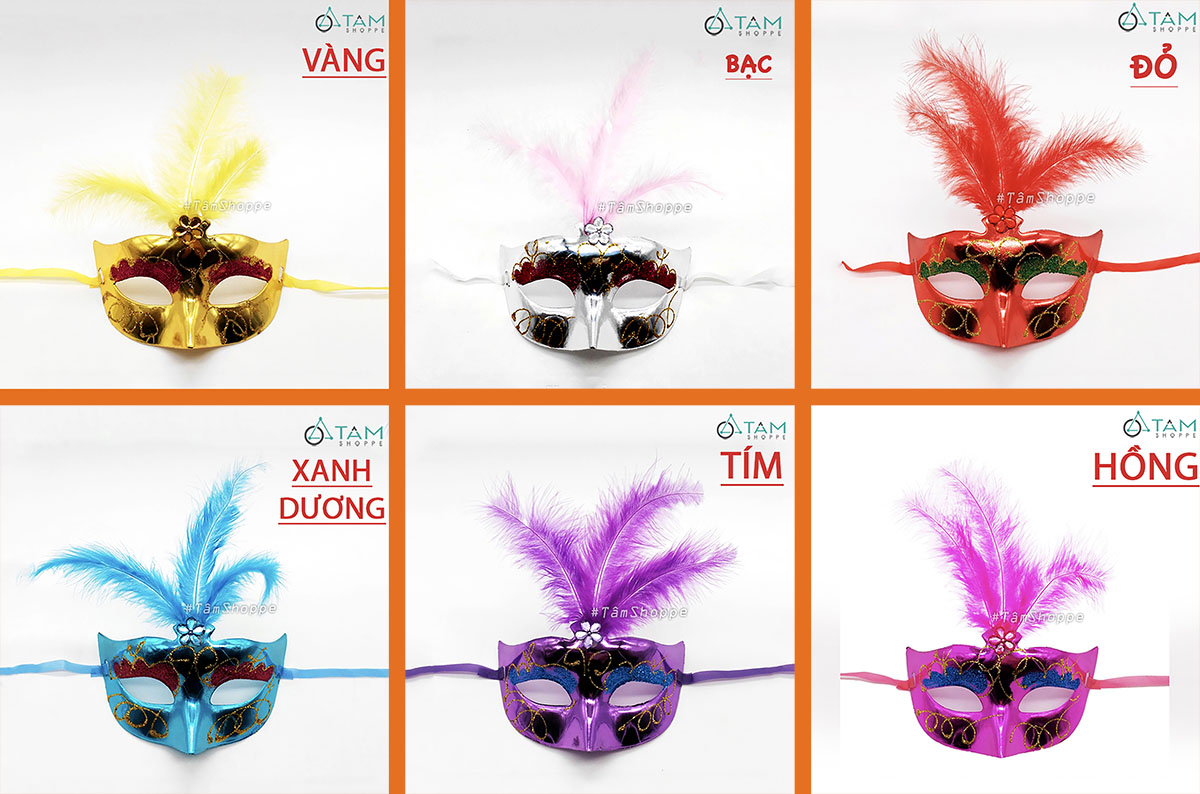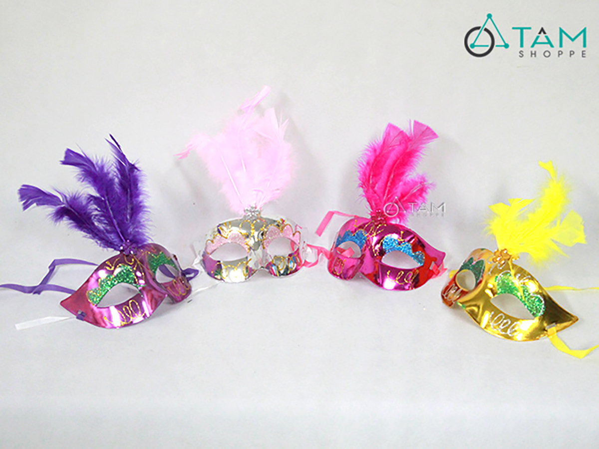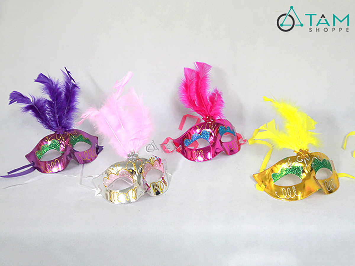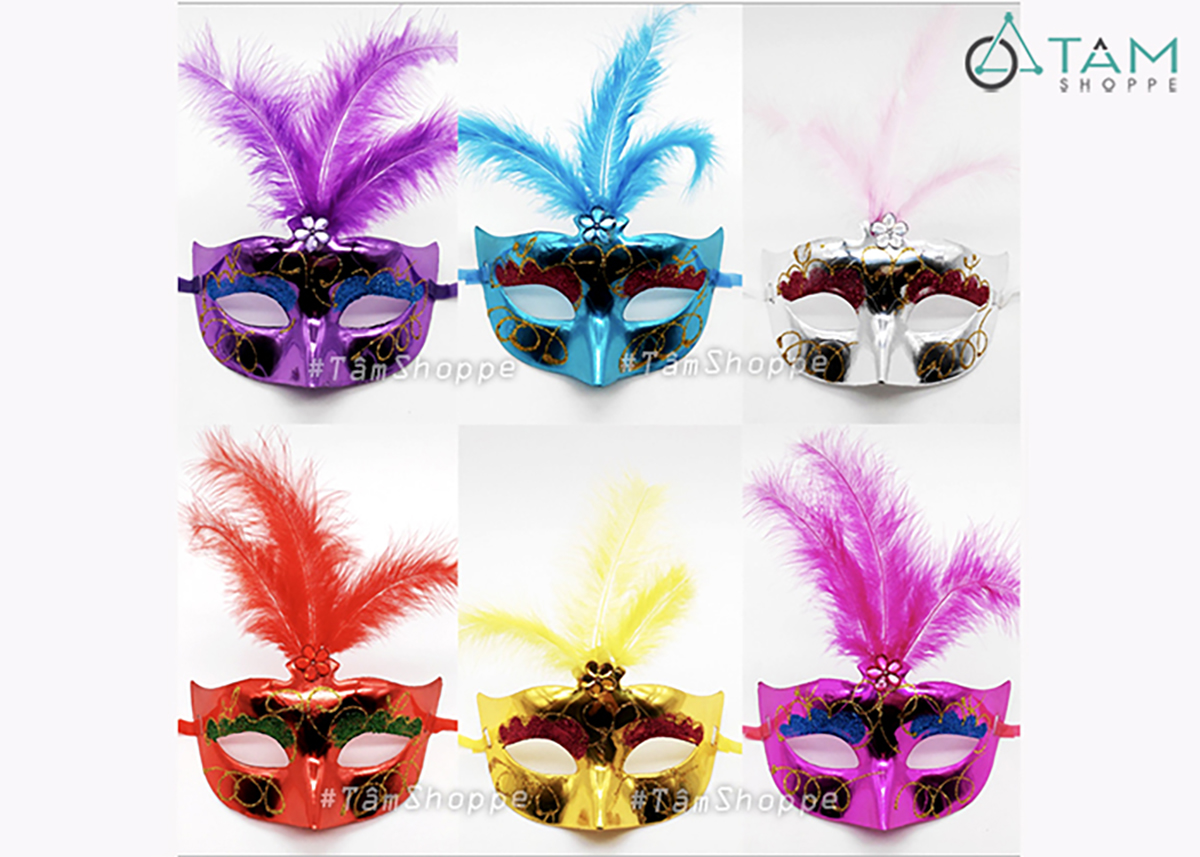 Mặt nạ nửa mặt kim tuyến lông vũ đính giữa hoa mai [Nửa mặt trên - nhiều màu] hoá trang đẹp mắt. Đồ hoá trang Halloween là những trang phục, phụ kiện và đạo cụ dùng để biến hoá thành các nhân vật đặc trưng của lễ hội Halloween. Mục đích là tạo vẻ ngoài kỳ bí, rùng rợn hoặc vui nhộn, phù hợp với không khí lễ hội.