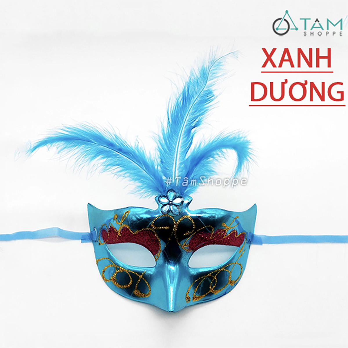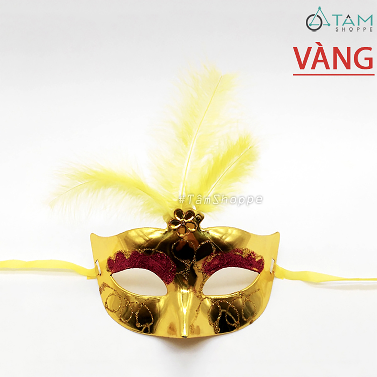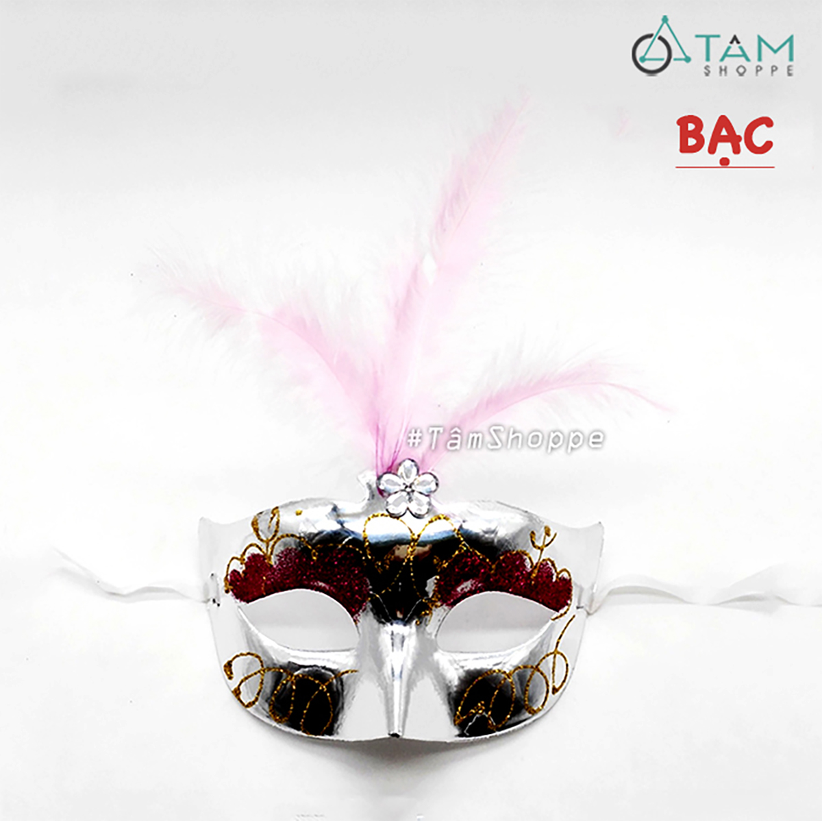 Mặt nạ nửa mặt kim tuyến lông vũ đính giữa hoa mai [Nửa mặt trên - nhiều màu] hoá trang đẹp mắt.