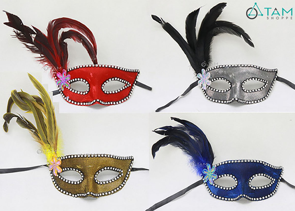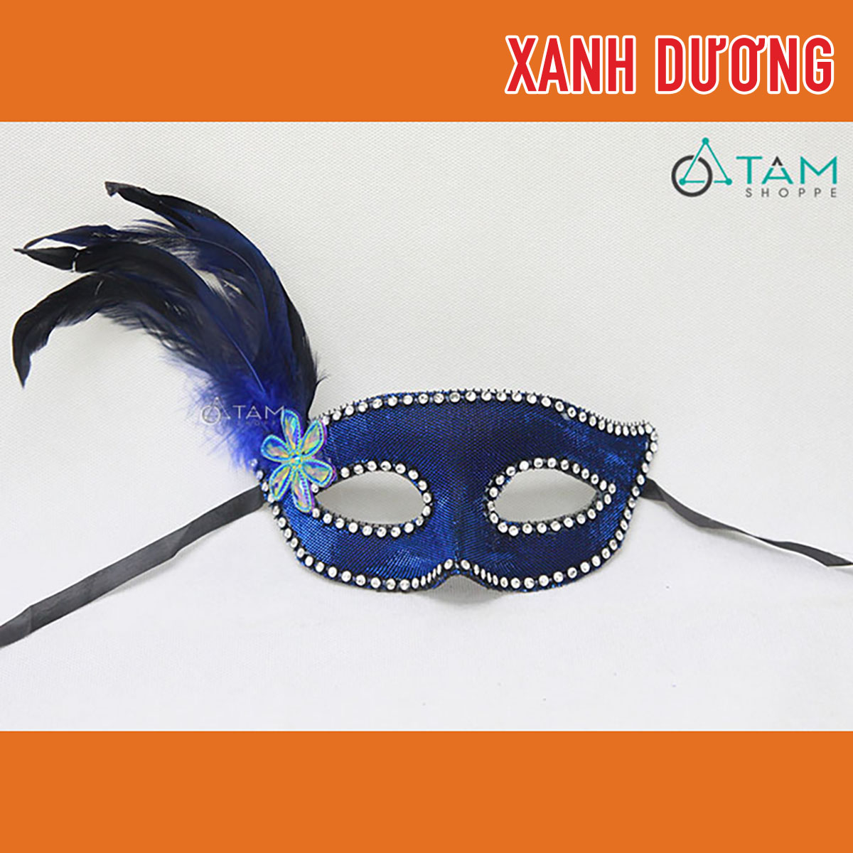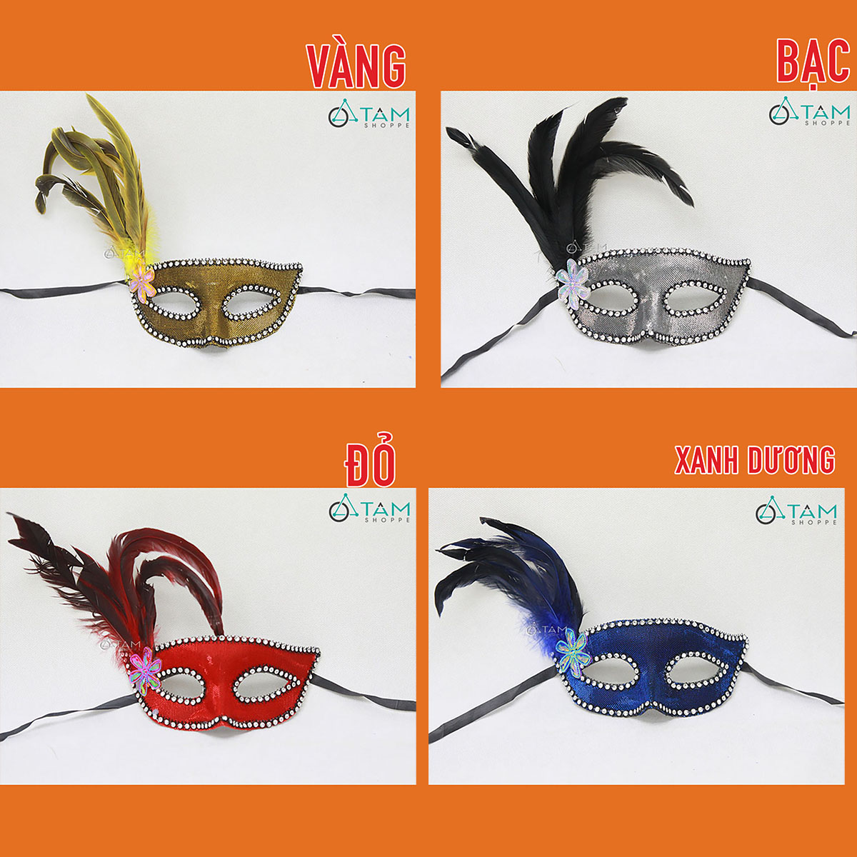 Mặt nạ nửa mặt lông chim một bên đính hoa [Nửa mặt trên - nhiều màu] hoá trang đẹp mắt.