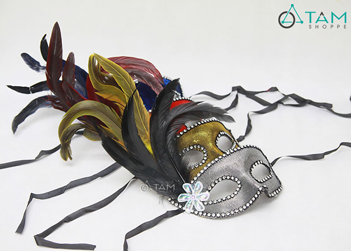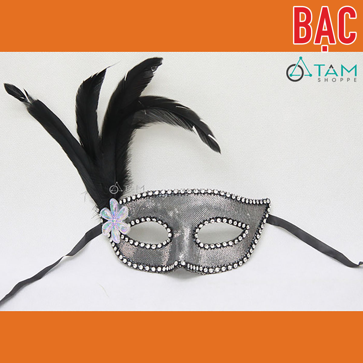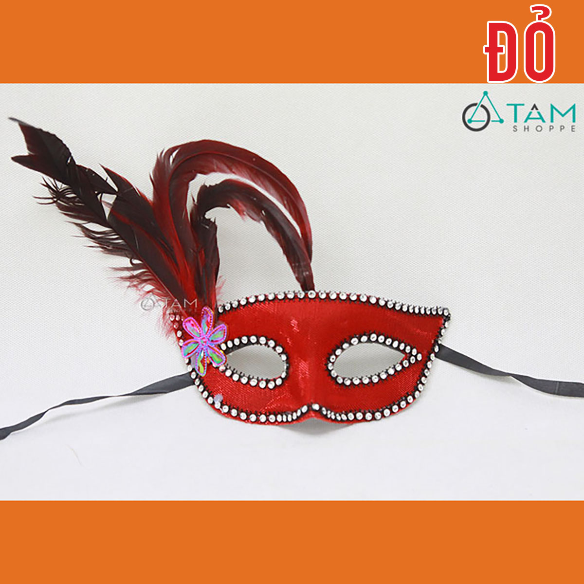 Mặt nạ nửa mặt lông chim một bên đính hoa [Nửa mặt trên - nhiều màu] hoá trang đẹp mắt.