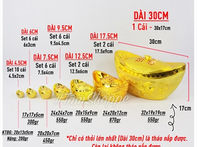 Mô hình thỏi vàng trang trí Tết nhiều cỡ trang trí đẹp mắt. Đồ trang trí tiểu cảnh Tết giúp bạn tạo background chụp ảnh, trang trí studio, trang trí sự kiện đầu năm… Tiểu cảnh Tết là đặc trưng không thể thiếu mỗi dịp xuân về. Những sản phẩm đẹp mắt dưới bàn tay và sự trình bày sáng tạo chắc chắn sẽ thu hút nhiều sự chú ý.