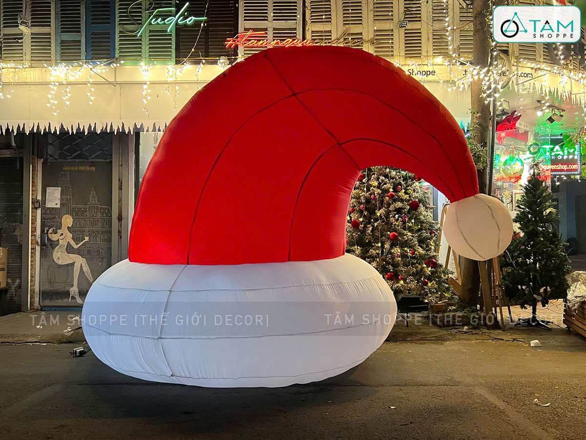 Nón Noel siêu to bơm hơi [Cao 2m - 3m - Căng đẹp] trang trí đẹp mắt.