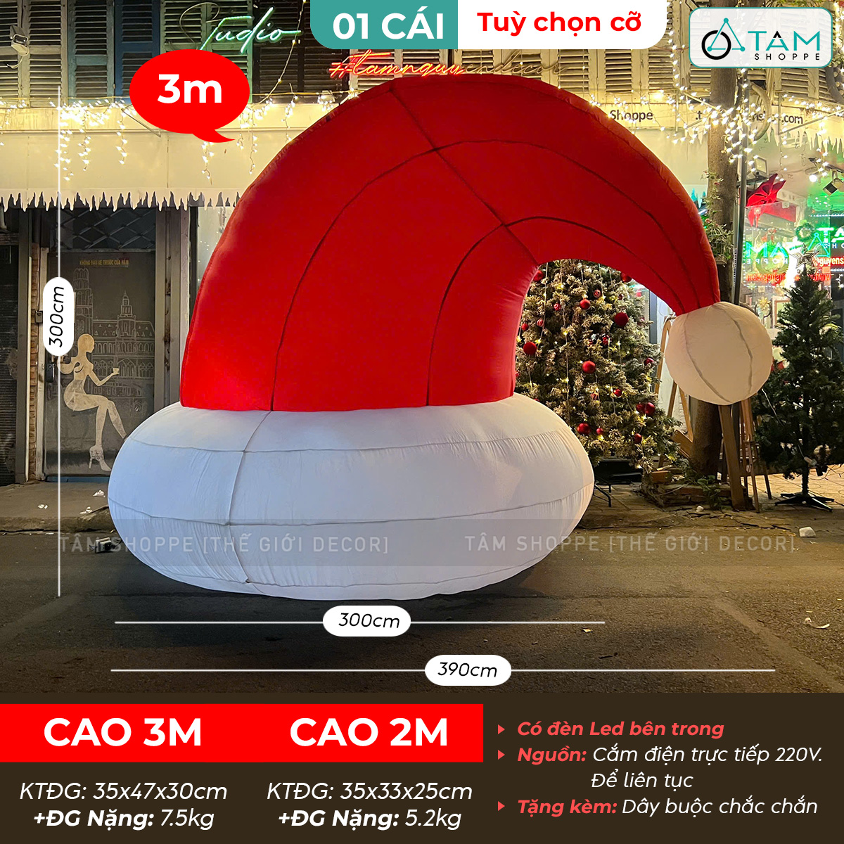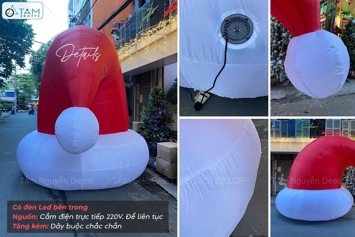 - Nón Noel siêu to bơm hơi [Cao 2m - 3m - Căng đẹp] trang trí đẹp mắt, là mô hình bơm hơi tự động không thể thiếu trong mùa Giáng Sinh, tượng trưng cho niềm vui trong mùa lễ hội. Khi dùng để trang trí, chúng mang lại cảm giác ấm áp, tràn đầy không khí Giáng Sinh.