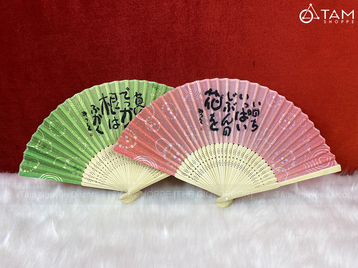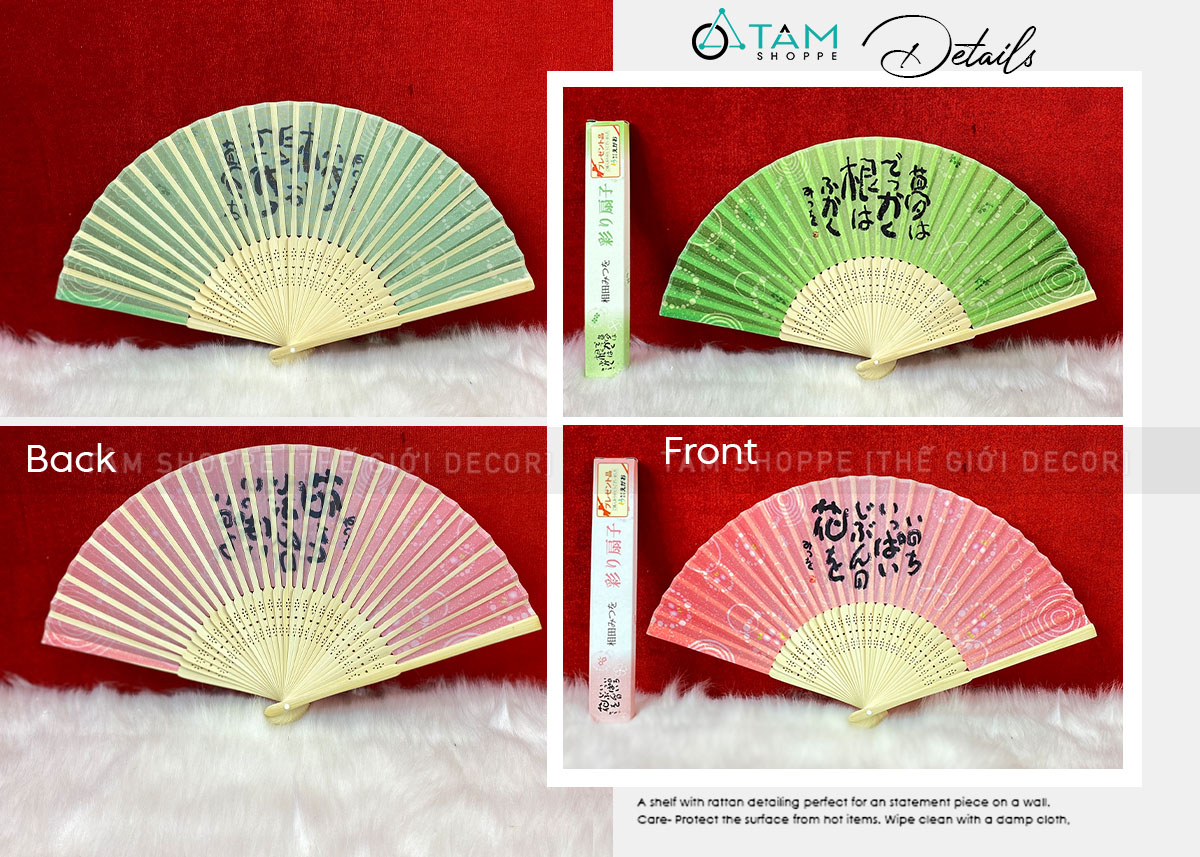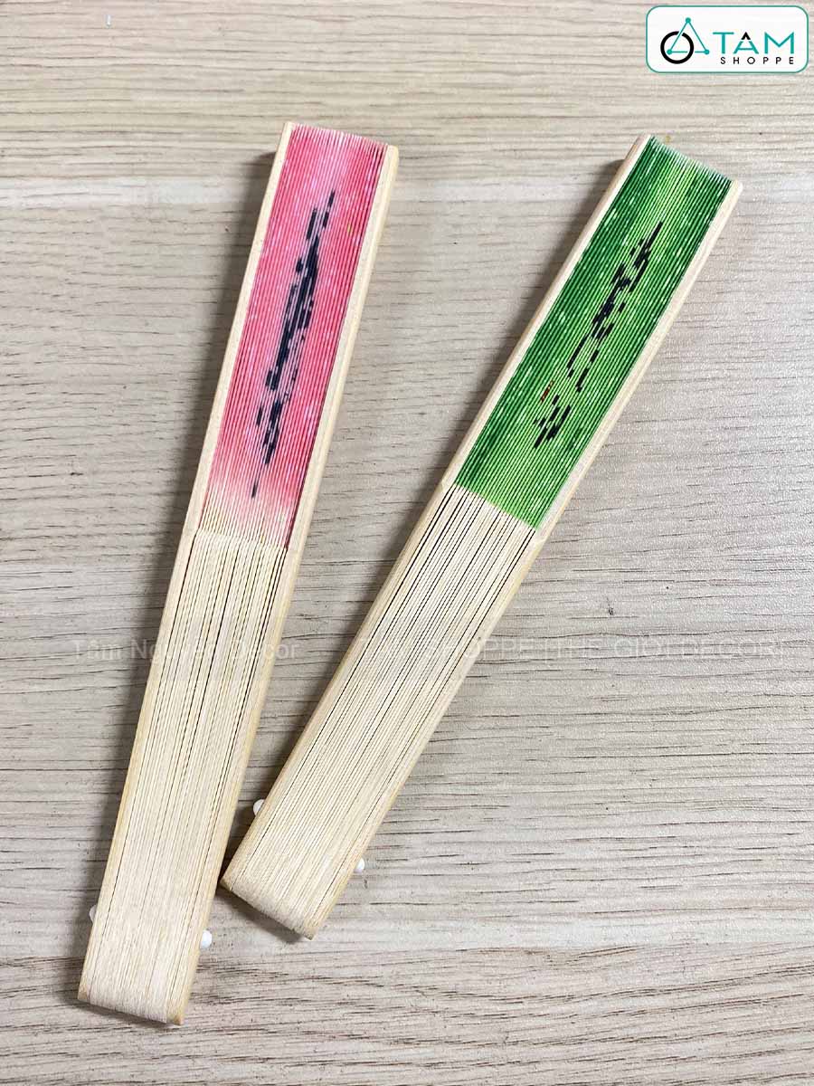 - Quạt làm bằng gỗ mỏng và vải, họa tiết sắc sảo, đẹp mắt.