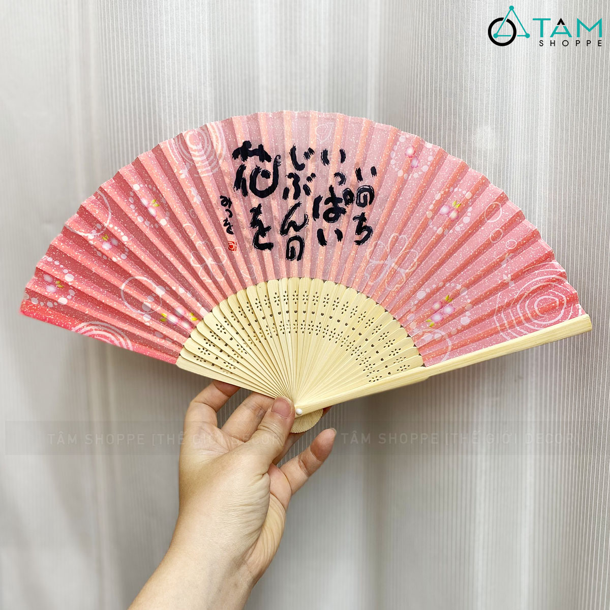 Quạt xếp cổ trang họa tiết đẹp R36cm sử dụng tiện lợi trang trí đẹp mắt