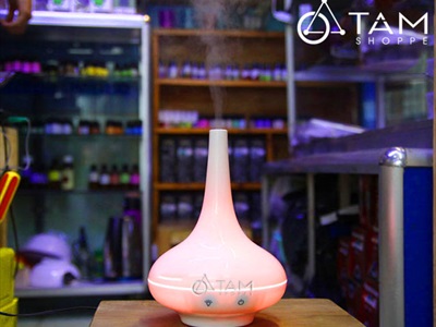 Máy khuếch tán tinh dầu Trụ lùn trắng phun khói siêu âm [Có remote -Tặng tinh dầu] MKTTD-24