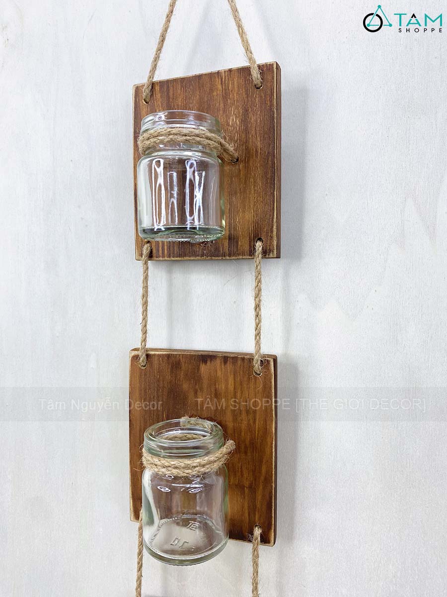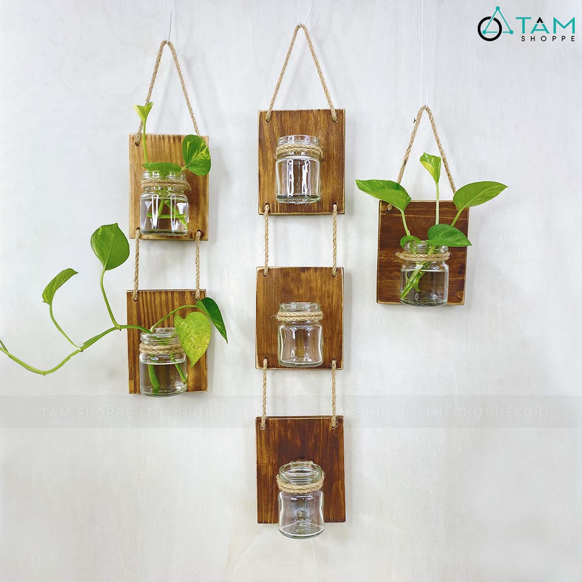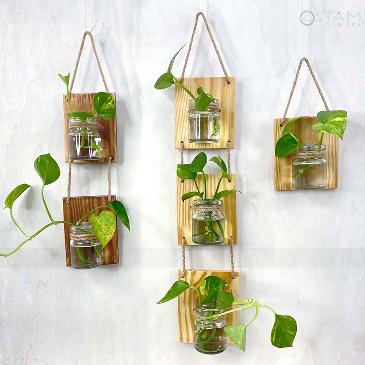 Tấm gỗ lọ thủy tinh treo tường thủy canh nhiều tầng [2 màu - 3 Size] trang trí đẹp mắt.